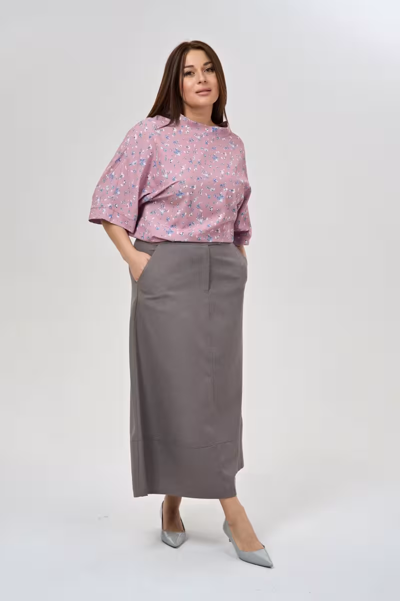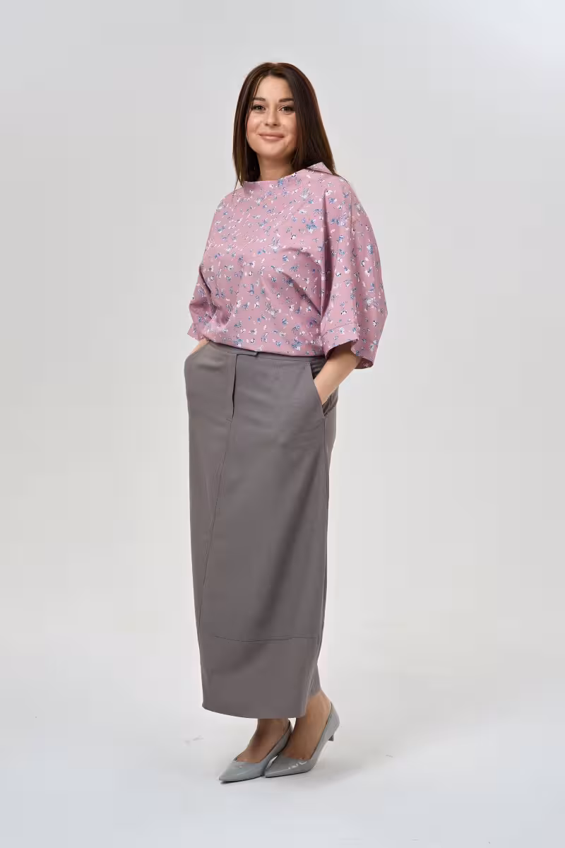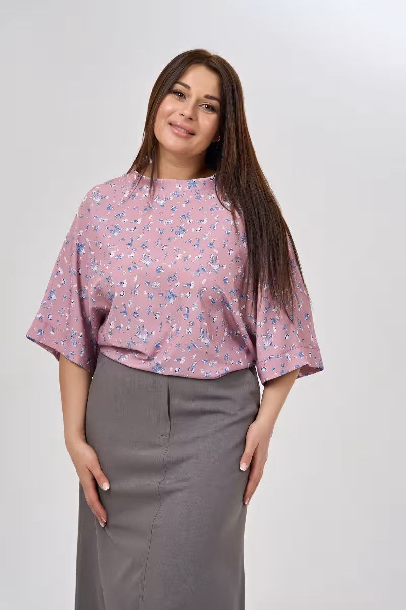 Эта блузка станет основой для множества образов благодаря продуманному свободному крою. Воротник-стойка придает силуэту структурированность не лишая при этом женственности. Рукава длиной три четверти с аккуратными манжетами создают изящную линию рук а фигурный низ добавляет движение всему образу.Мягкая вискоза приятна к телу и красиво драпируется подчеркивая достоинства фигуры. Материал дышит и не сковывает движения что особенно важно в активном ритме жизни.Для делового образа сочетайте с прямыми брюками высокой посадки и жакетом. В офисе такой комплект будет выглядеть профессионально и стильно. Casual-лук получится с зауженными джинсами и кроссовками для прогулок по городу.Вечерний выход украсит сочетание с брюками-палаццо и элегантными туфлями. Блузка одинаково хороша на деловых встречах в путешествиях и на вечеринках. Воротник-стойка делает образ завершенным даже без дополнительных аксессуаров.