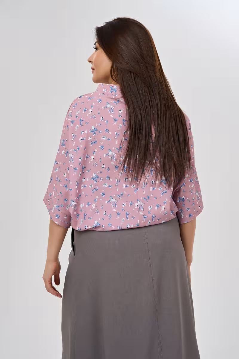 Блузка свободного кроя с воротником-стойкой