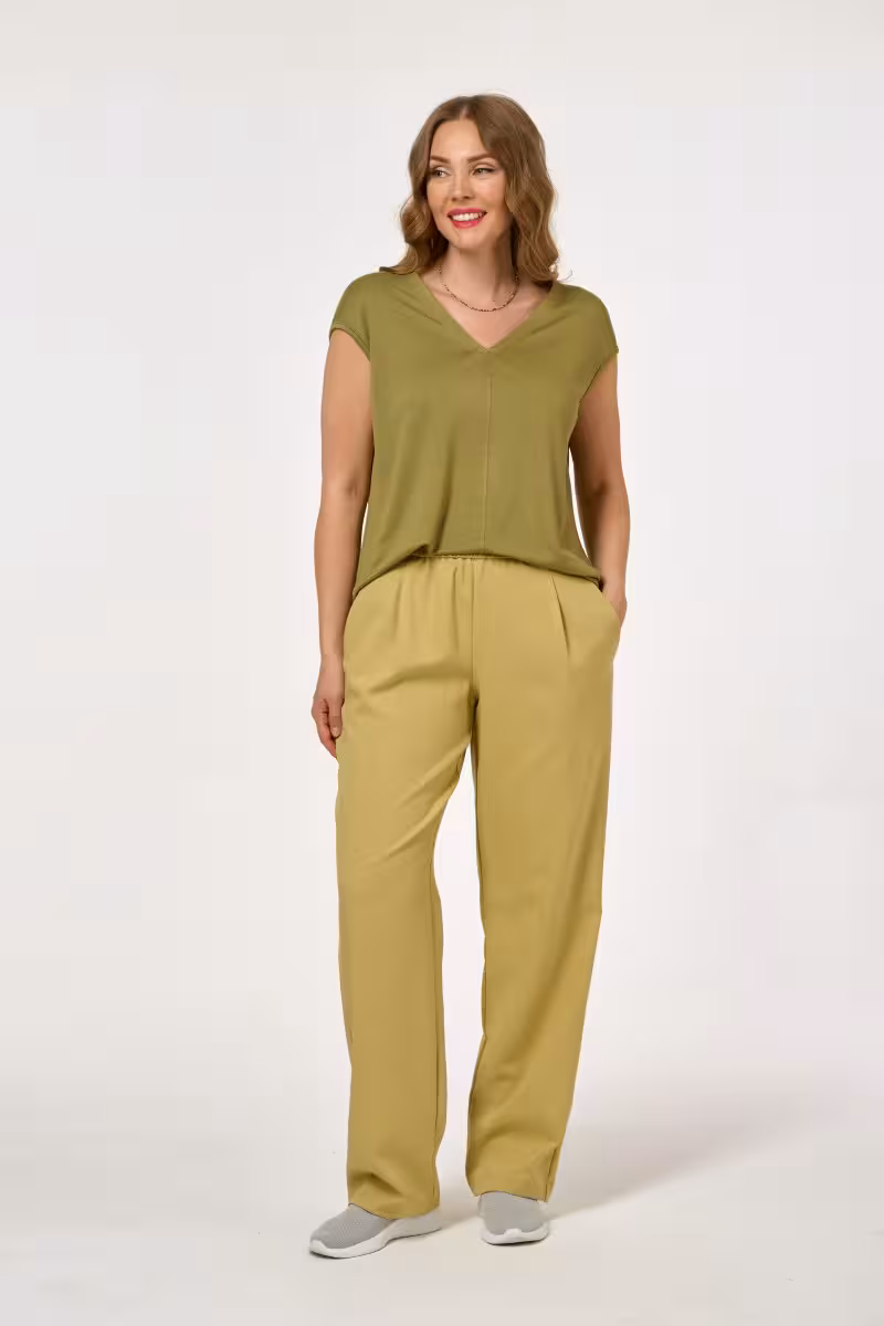 Эта блузка дарит ощущение легкости и уверенности благодаря свободному крою рукавов. V-образный вырез визуально удлиняет шею и создает женственный образ. Идеальное решение для тех кто ценит комфорт без потери элегантности.