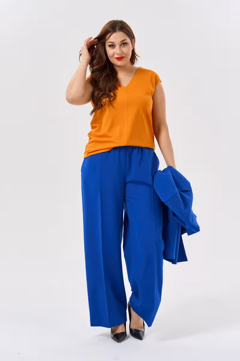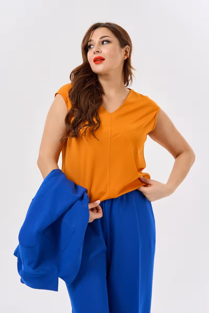 Эта блузка воплощает философию современной женственности – когда стиль рождается из простоты. Свободный рукав кимоно напоминает о японском минимализме создавая мягкие линии которые льстят любой фигуре. V-образный вырез визуально вытягивает силуэт и открывает красивую линию декольте.Прямой силуэт становится идеальной основой для создания разнообразных образов. В паре с прямыми деловыми брюками высокой посадки получается безупречный офисный лук. Зауженные брюки превращают блузку в элемент для вечернего выхода а свободные брюки-бананы создают расслабленный образ для прогулок.Центральный шов спереди с декоративной отстрочкой добавляет структурности и графичности. Натуральный состав ткани обеспечивает комфорт в течение всего дня. Блузка одинаково хороша для деловых встреч путешествий и вечеринок.Сочетания безграничны: с жакетом для официальных мероприятий с футболкой layering-стиле для casual образов с топом для создания многослойности. Эта вещь доказывает что универсальный гардероб может быть стильны