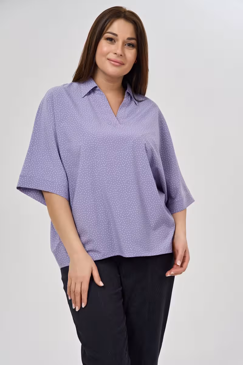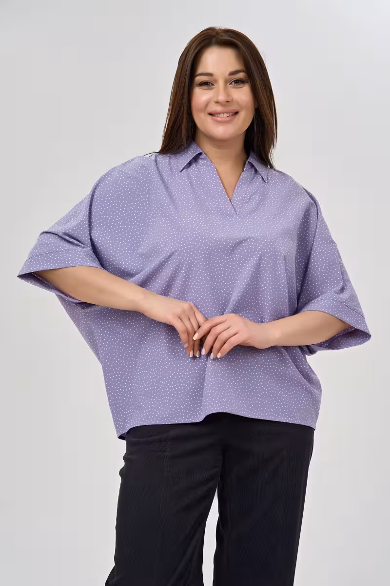 Когда хочется выглядеть собранно но чувствовать себя свободно эта Блузка свободного силуэта становится верным спутником. Просторный крой позволяет коже дышать даже в самый жаркий день а рукава длиной три четверти с изящной отделкой по краю добавляют образу завершенности. Утром с прямыми брюками и жакетом она превращается в основу делового образа для офиса или встреч. Днем в паре с зауженными джинсами создает непринужденный look для прогулок по городу. Вечером в сочетании с брюками-палаццо дарит ощущение легкости и комфорта.Качественная ткань мягко облегает фигуру не сковывая движений. Классический воротник и свободный силуэт делают блузку универсальной – она одинаково хорошо смотрится навыпуск или заправленной в брюки с высокой посадкой. Деталь в виде аккуратной отделки рукавов превращает простую вещь в продуманный элемент гардероба. Это та самая блузка которая работает и в офисе и на прогулке и в путешествии – просто меняя аксессуары и низ образа.