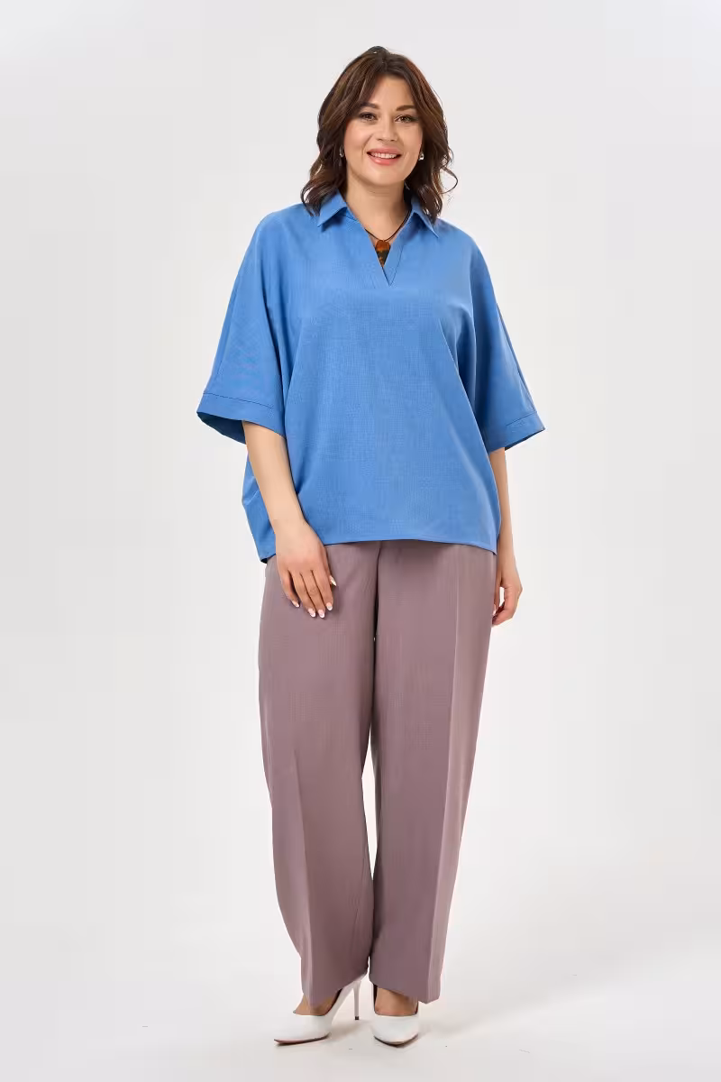 Эта блузка словно создана для тех моментов когда хочется чувствовать себя легко и непринужденно. Свободный силуэт не сковывает движения позволяя коже дышать благодаря натуральному льну в составе. Рукава длиной три четверти с аккуратными манжетами на запястьях добавляют образу завершенности.Лен обладает удивительным свойством становиться мягче с каждой стиркой сохраняя при этом свою естественную фактуру. Материал отлично регулирует температуру тела что делает блузку идеальным спутником для офисных будней и неспешных прогулок.Универсальность кроя открывает множество стилевых решений. С прямыми деловыми брюками получается элегантный офисный лук. Свободные брюки-бананы создадут расслабленный casual образ для выходных. Зауженные модели с высокой посадкой подчеркнут силуэт для вечернего выхода.Простота формы компенсируется благородством фактуры льна. Такая вещь легко адаптируется под настроение дня – от деловой встречи до творческих прогулок по городу.