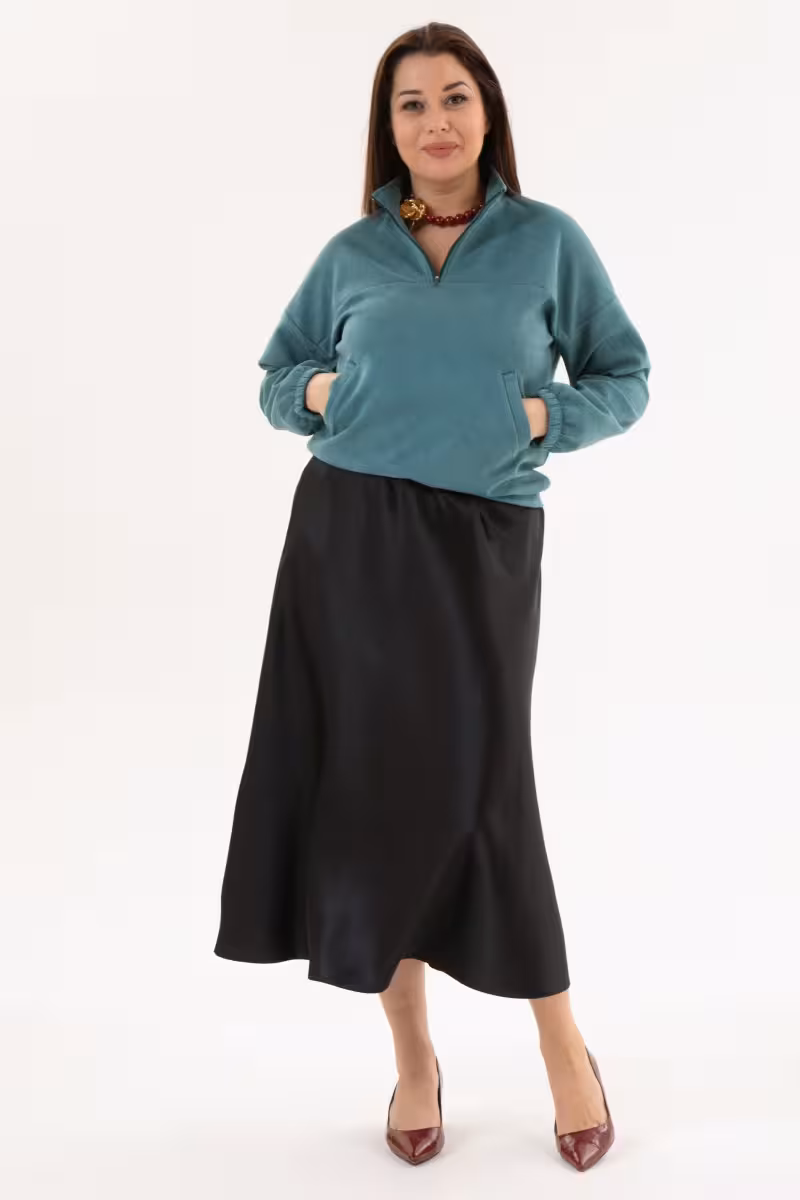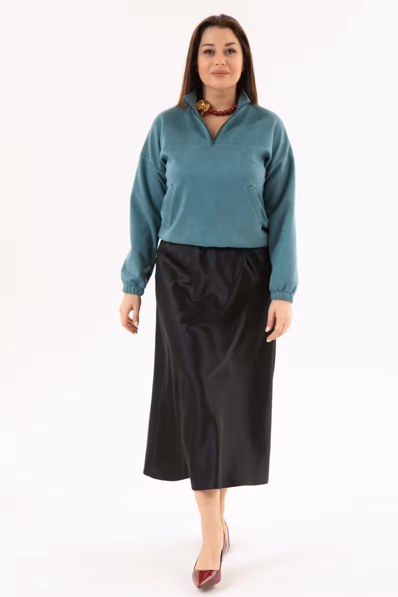 Замшевая блузка становится центром внимания в любом образе. Высокий воротник-стойка создает элегантную линию шеи и придает облику аристократическую изысканность. Искусственная замша выглядит дорого и благородно при этом остается практичной в уходе.Молния спереди позволяет играть с декольте – полностью закрытая для деловых встреч или слегка расстегнутая для вечерних выходов. Функциональные карманы добавляют практичности не нарушая силуэт. Длинные рукава создают законченный образ.Блузка превосходно сочетается с прямыми деловыми брюками для офиса или зауженными для вечерней прогулки. С юбкой-карандаш получается безупречный деловой лук а с брюками-палаццо – стильный casual-образ. Модель больших размеров создана для женщин которые ценят комфорт без компромиссов в стиле. Замшевая текстура скрывает несовершенства и подчеркивает достоинства фигуры. Универсальный оттенок позволяет носить блузку от деловых встреч до романтических ужинов.