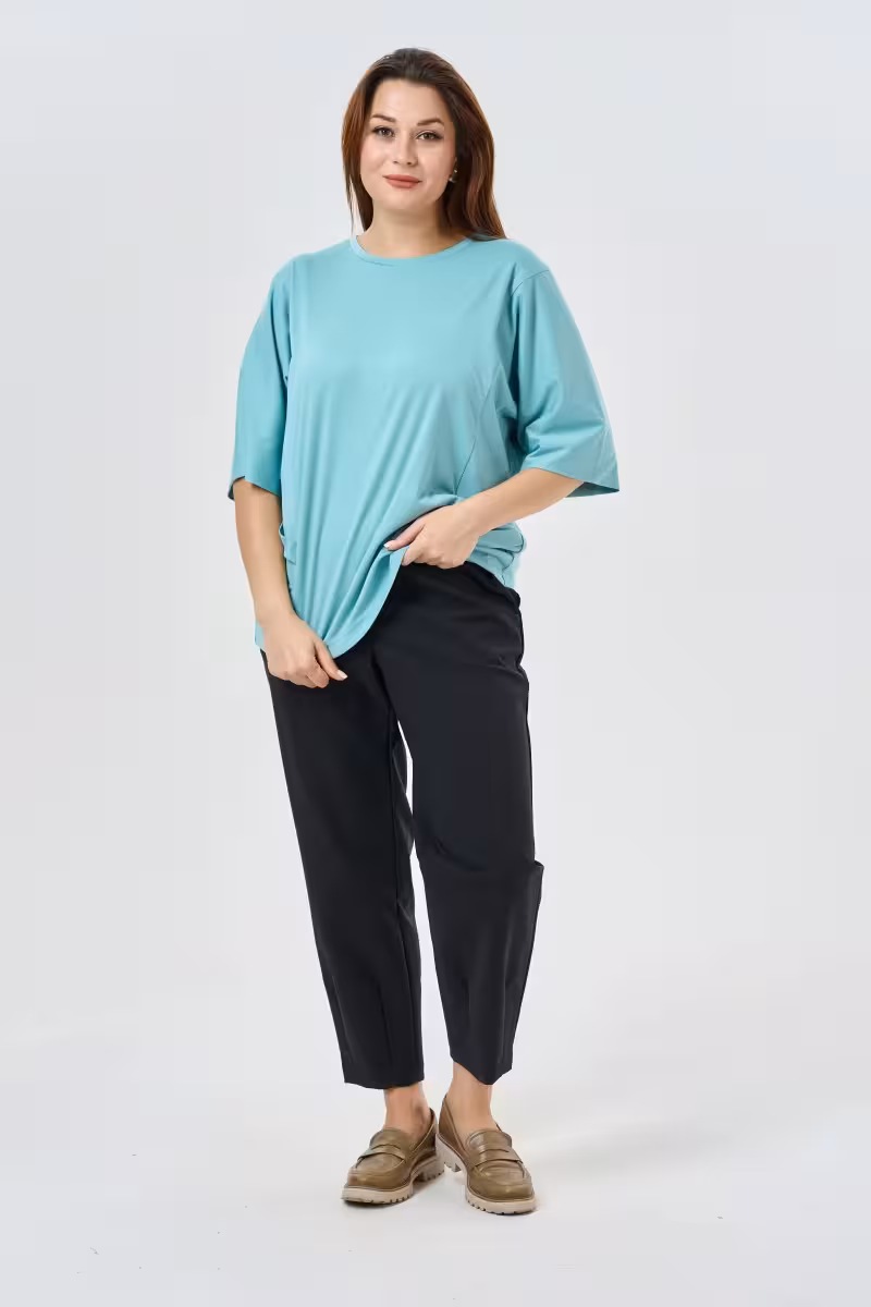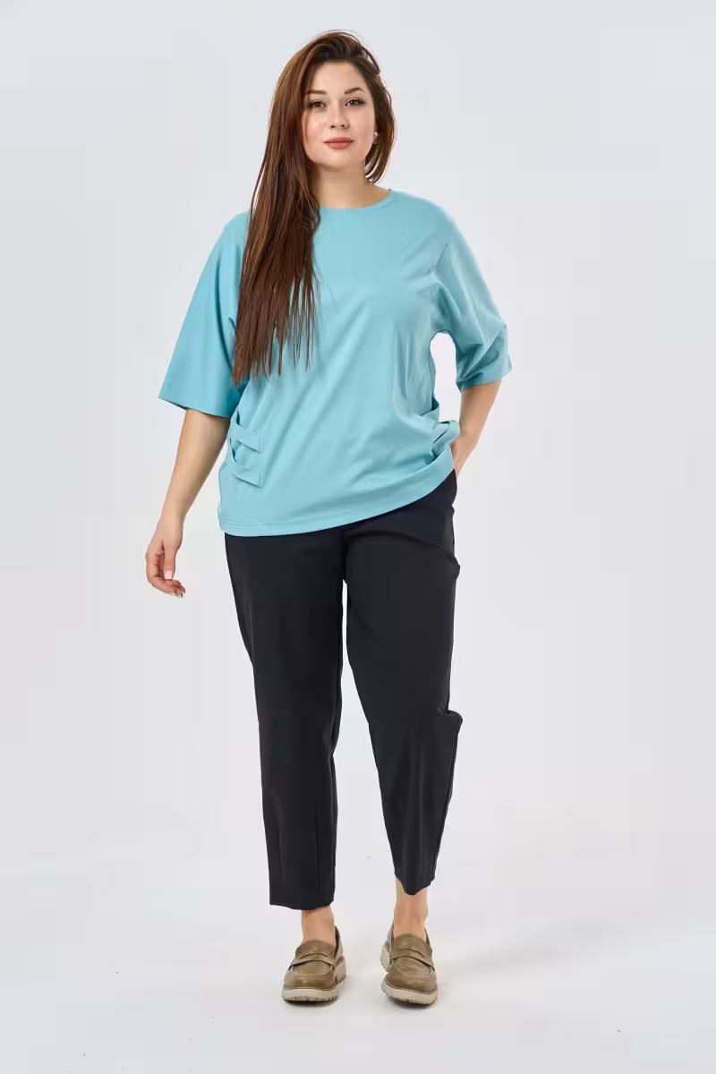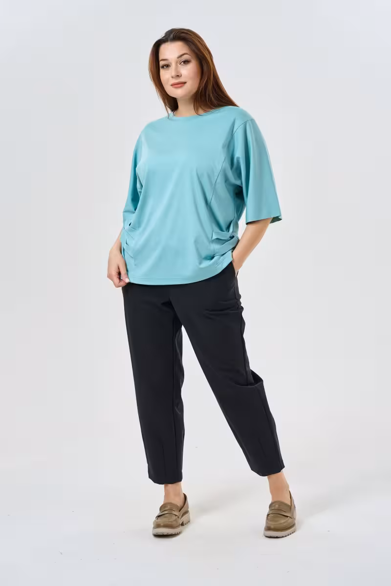 Свободная блузка из натуральной вискозы — находка для тех кто ценит комфорт без компромиссов в стиле. Мягкая ткань приятно прилегает к телу а свободный крой позволяет чувствовать себя расслабленно даже в самый загруженный день. Округлый вырез красиво обрамляет шею создавая мягкую женственную линию. Рукава до локтя — универсальная длина которая подходит для любого сезона и не сковывает движения. Особую изысканность блузке придают боковые декоративные акценты которые создают интересную игру линий и добавляют объемности силуэту.Вискоза в составе ткани обеспечивает воздухопроницаемость и приятные тактильные ощущения. Материал красиво драпируется и не сковывает движения что особенно важно для одежды больших размеров.Эта блузка легко впишется в деловой гардероб в паре с брюками-карандашом создаст расслабленный образ с джинсами для дружеской встречи или станет основой для романтичного лука с юбкой. Универсальность кроя позволяет носить ее на офисные встречи свидания и вечеринки.
