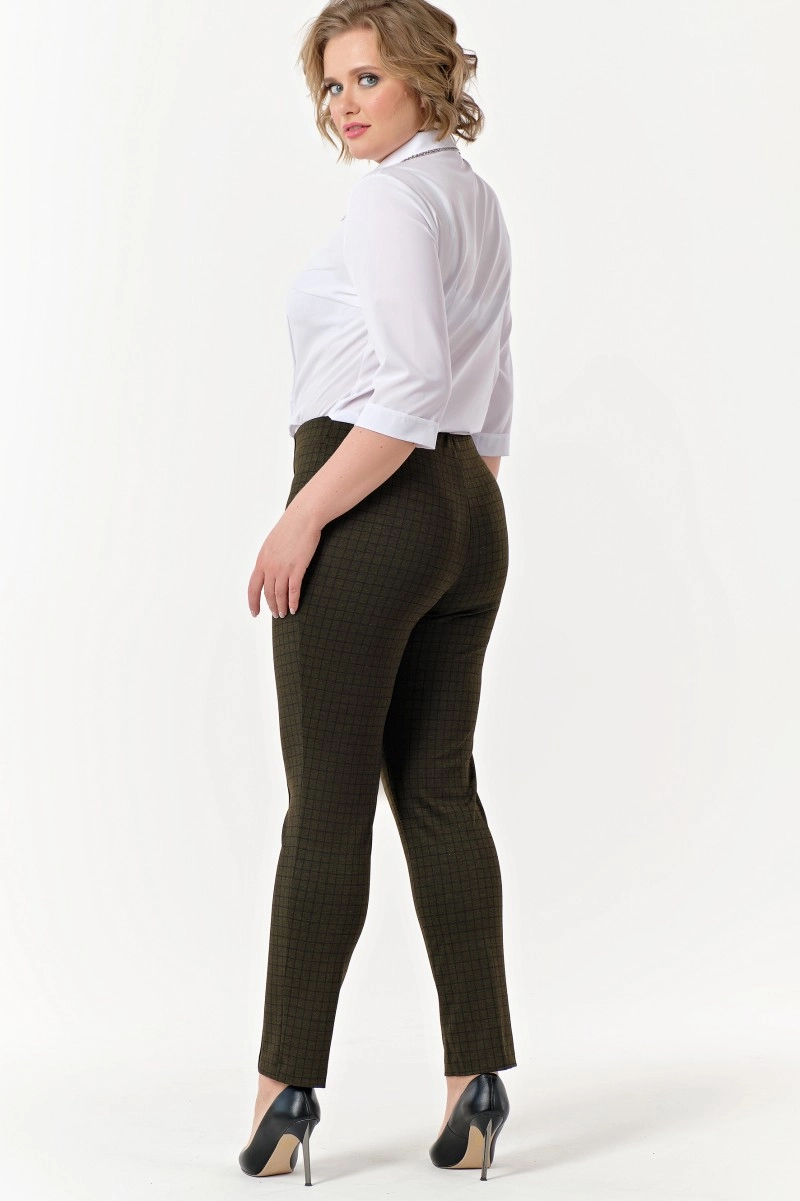 Четкие линии стрелок придают образу деловую элегантность. Высокая посадка подчёркивает талию и визуально удлиняет ноги. Пояс с резинкой дарит свободу движений даже в самый напряженный рабочий день.