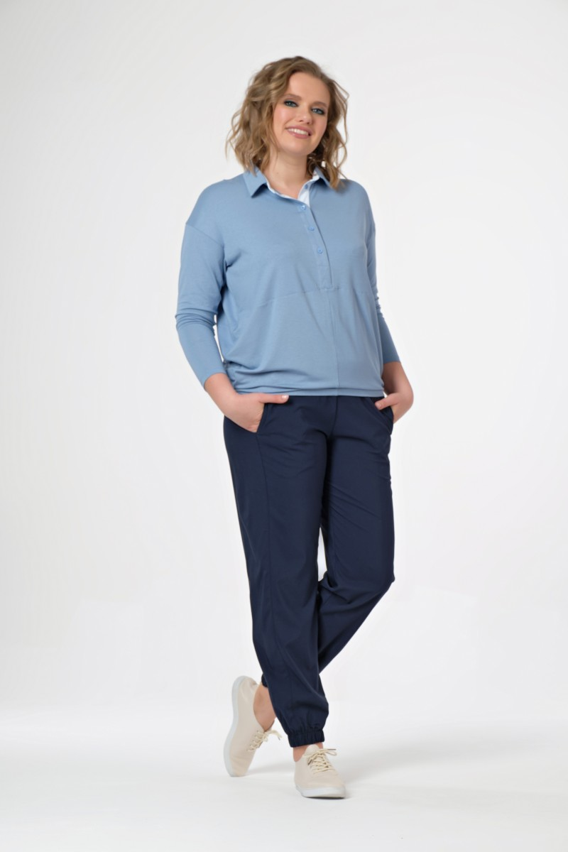 Свободный силуэт создает ощущение невесомости и комфорта в движении. Резинка внизу добавляет современную спортивную ноту классическому крою. Универсальная основа для образов от прогулочных до офисных.