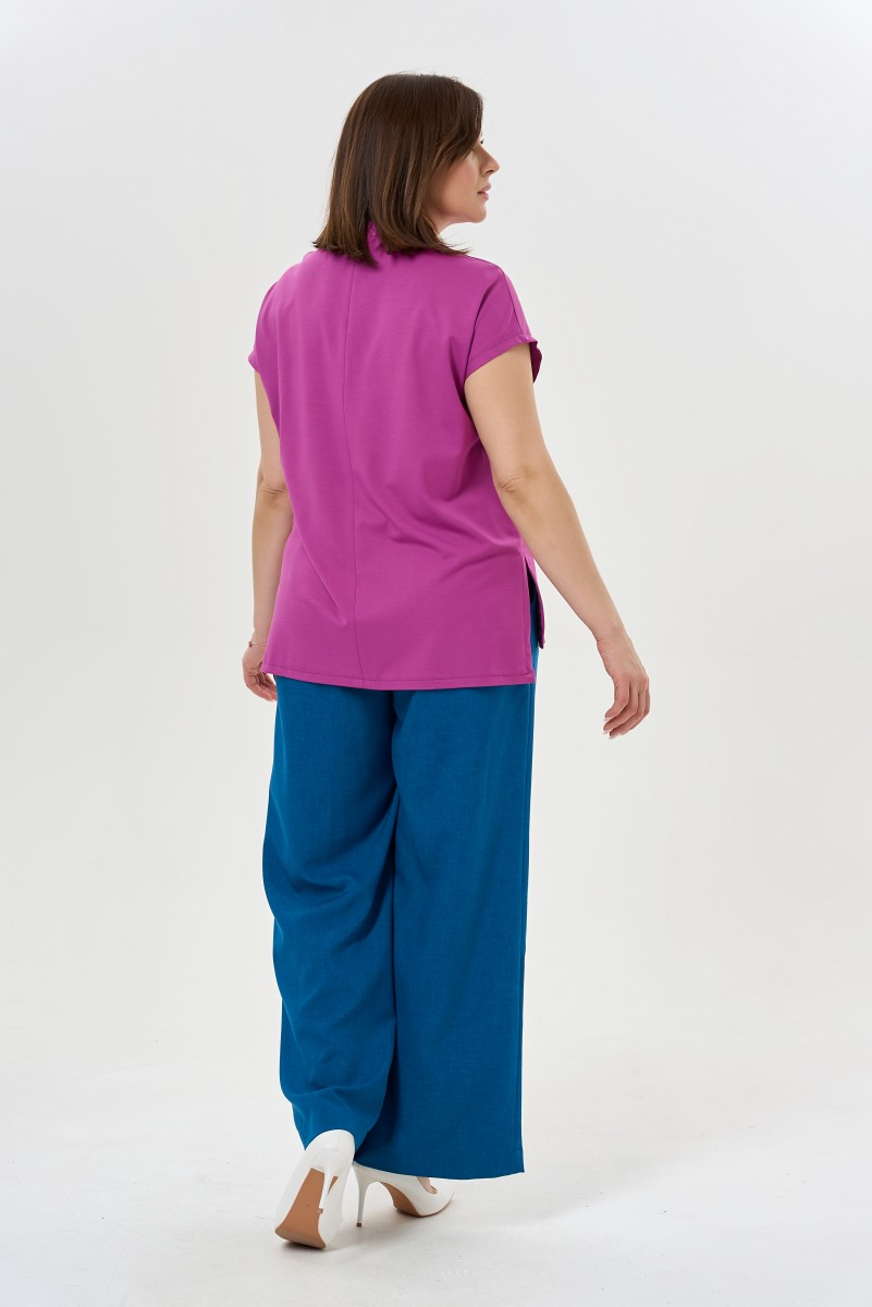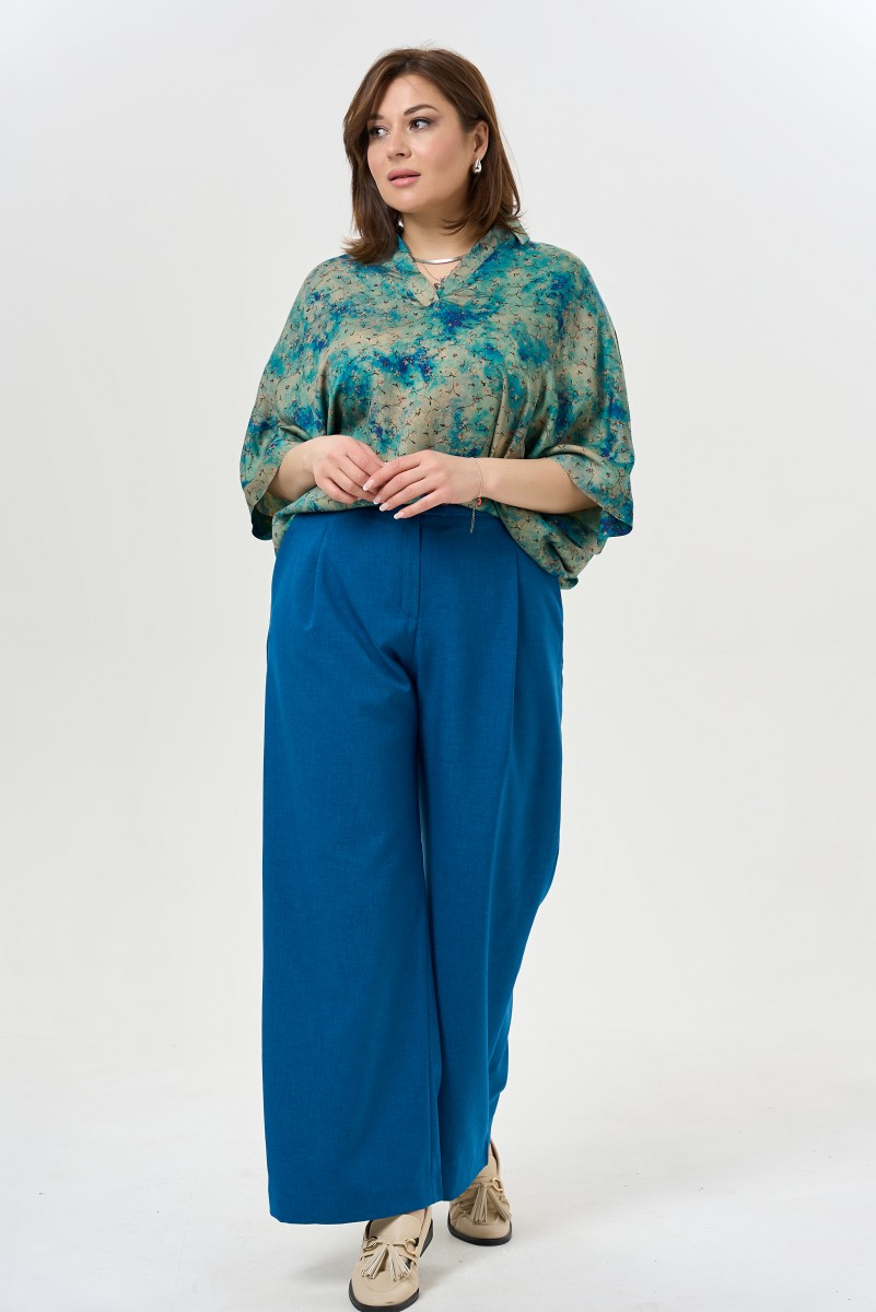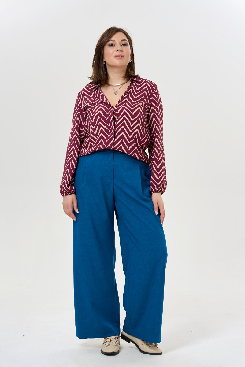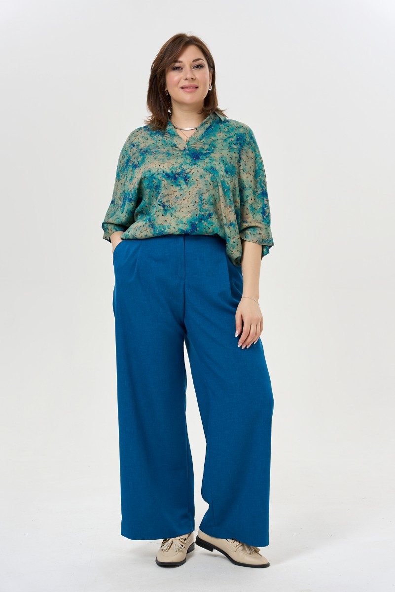 Силуэт палаццо возвращается в гардероб современной женщины как символ непринужденной элегантности. Широкие брюки с высокой посадкой визуально удлиняют ноги и подчеркивают талию создавая безупречные пропорции. Защипы по передней части добавляют объем и движение ткани превращая каждый шаг в грациозное движение.Продуманные детали делают модель универсальной для разных случаев. Боковые карманы скрыты в швах — практичность остается невидимой. Пояс спереди держит форму а резинка сзади обеспечивает комфорт в течение дня. Застежка на молнии и пуговица создают аккуратную посадку.Эти брюки легко адаптируются под настроение и событие. С блузкой и жакетом получается деловой образ для встреч и презентаций. Футболка или топ превращают их в наряд для прогулок по городу или встреч с друзьями. Качественная ткань держит форму и позволяет чувствовать себя уверенно от утреннего кофе до вечернего ужина.