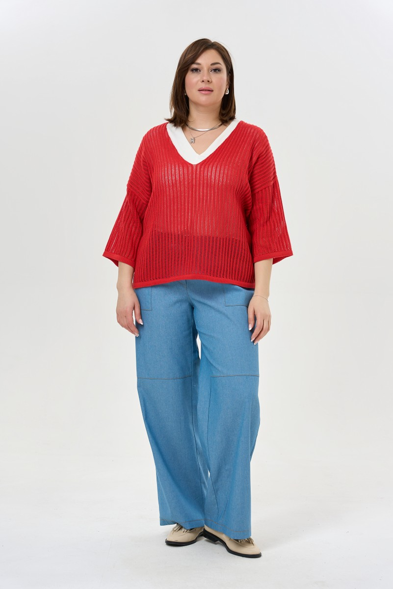 Брюки джинсовые широкие с контрастной отстрочкой