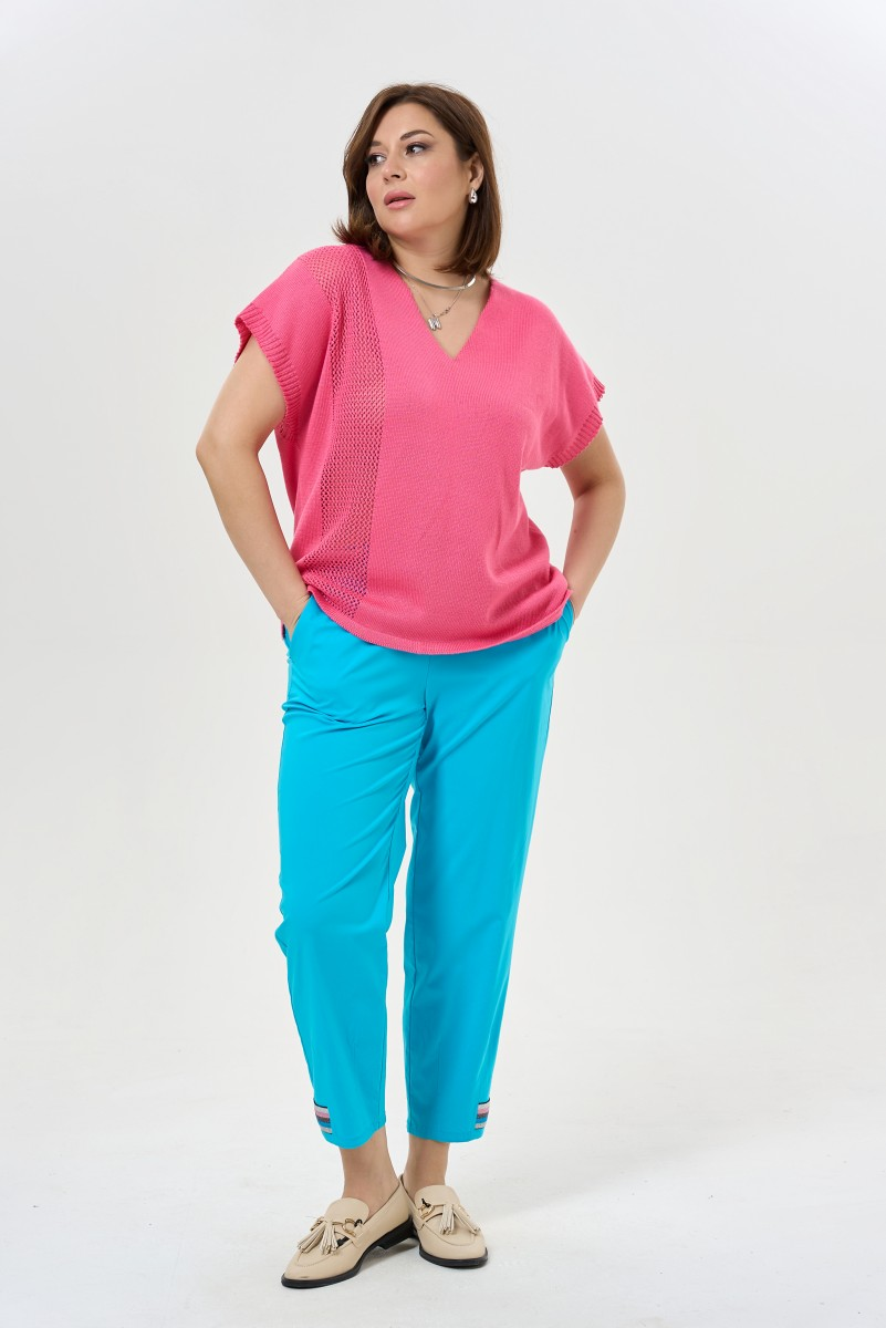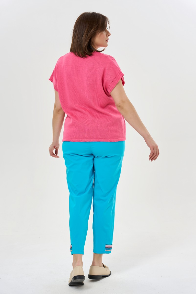 Зауженные брюки длиной до щиколотки подчеркивают стройность ног и создают утонченный образ. Декоративные детали по низу добавляют особый шарм каждому движению. Универсальная модель для создания элегантных луков от офиса до вечерней прогулки.