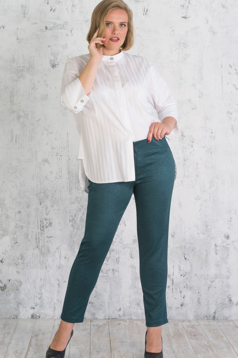 Укороченная длина открывает красивую обувь а контрастные лампасы добавляют динамики классическому силуэту. Зауженный крой от бедра создает элегантную линию ноги.
