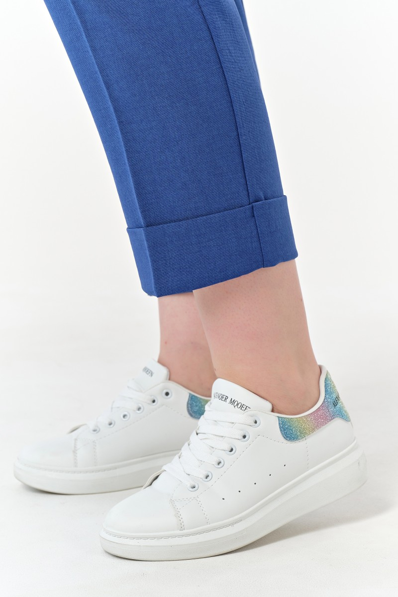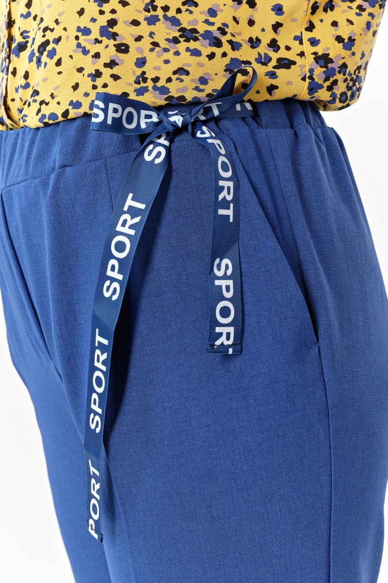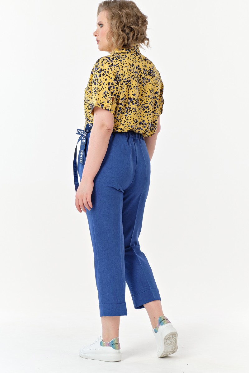 Свободный силуэт дарит ощущение легкости словно летний бриз касается кожи. Укороченная длина с подворотами создает непринужденный образ городской путешественницы. Декоративная лента на поясе добавляет игривую нотку в повседневный гардероб.