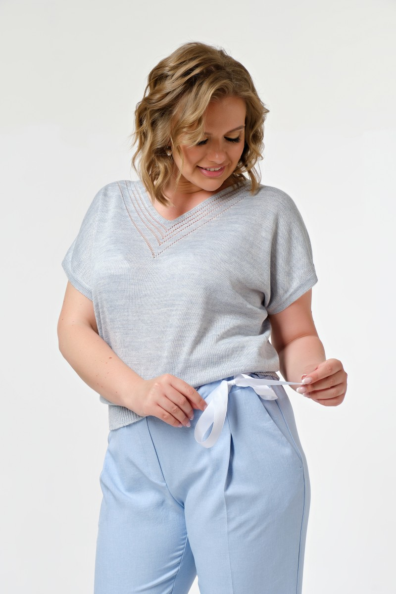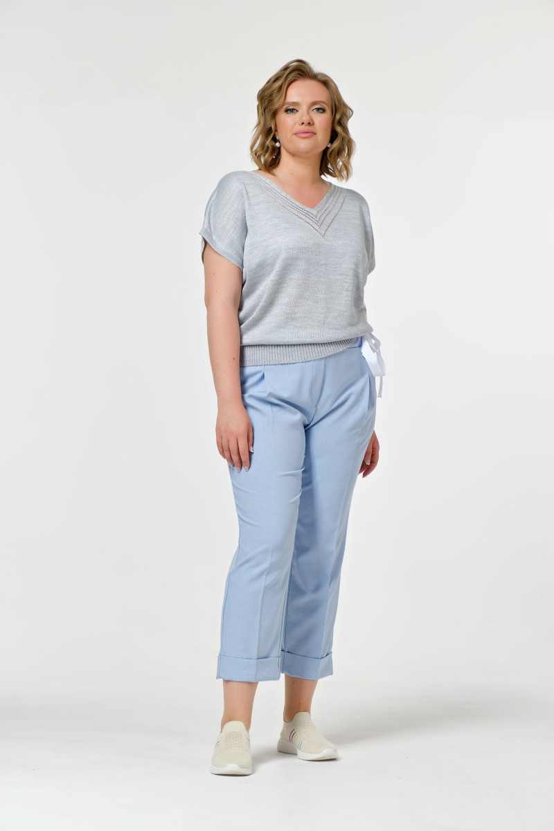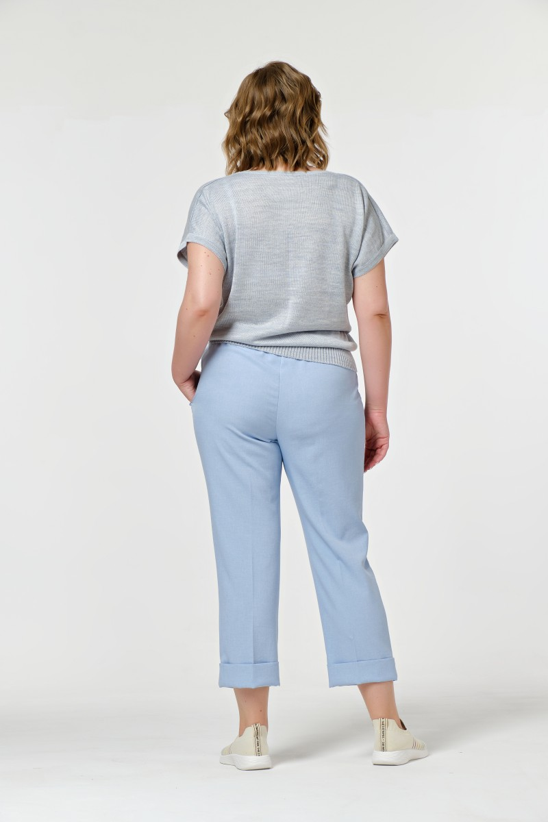 Брюки льняные свободные с подворотами голубые