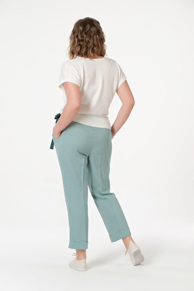 Эти брюки созданы для тех кто ценит комфорт без компромиссов в стиле. Свободный силуэт не сковывает движения а пояс на мягкой резинке обеспечивает идеальную посадку в течение всего дня. Декоративная лента-завязка сбоку добавляет изящный акцент и позволяет регулировать силуэт по настроению.Слегка укороченная длина визуально удлиняет ноги и прекрасно сочетается с любой обувью – от кроссовок до изящных лодочек. Практичные боковые карманы делают эти брюки незаменимыми для повседневной носки. Аккуратно обработанный низ с подворотом завершает продуманный дизайн.Универсальность этой модели позволяет создавать образы для разных случаев жизни. С хлопковой футболкой получается идеальный casual-лук для прогулок и встреч с друзьями. Дополните образ блузкой из натурального шелка – и готов элегантный наряд для деловой встречи. Качественная ткань с добавлением эластана обеспечивает долговечность и комфортную носку.