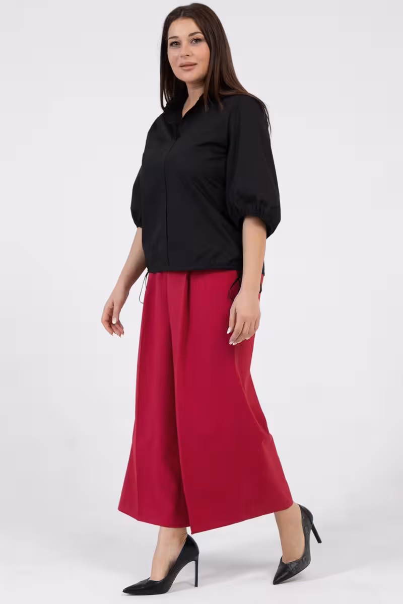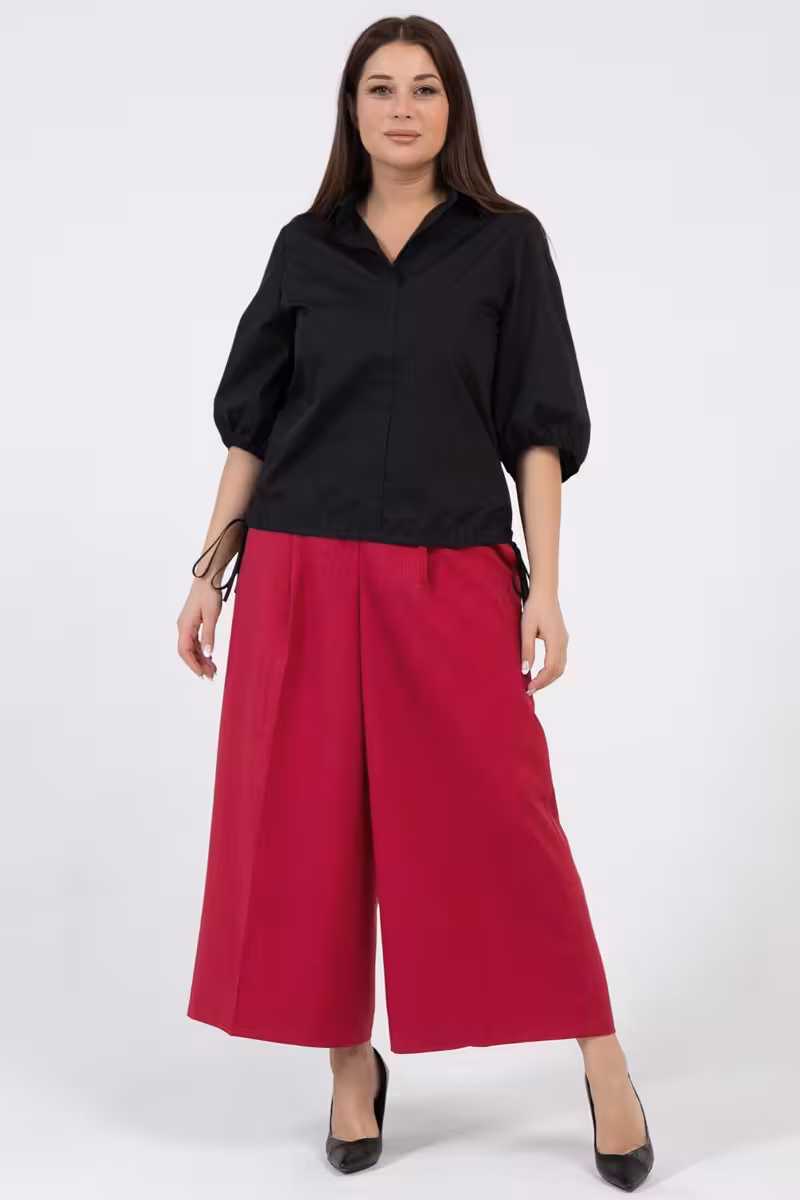 Кюлоты с четкими стрелками дарят ощущение легкости и уверенности. Широкий крой струится при ходьбе создавая эффектный силуэт. Средняя посадка обеспечивает комфорт на весь день.