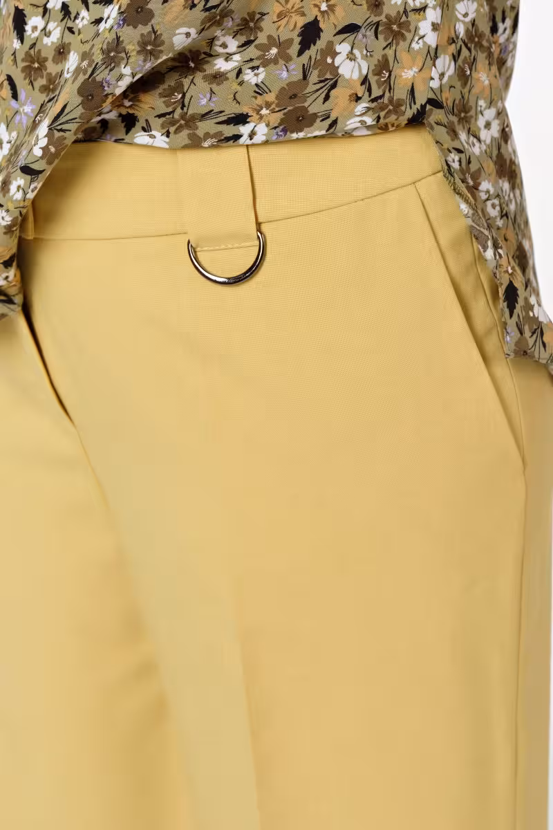 Свободный силуэт палаццо длиной до щиколотки создает легкий струящийся образ. Горчичный оттенок добавляет теплоты любому луку а лен дарит ощущение прохлады даже в жару.