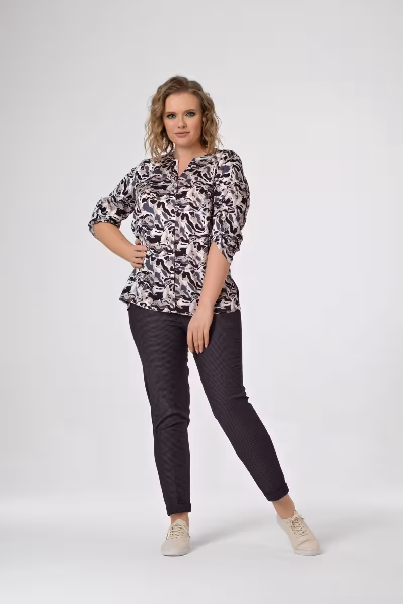 Классические прямые брюки со стрелками станут основой гардероба для тех кто ценит элегантность и комфорт. Средняя посадка создает идеальный баланс между стилем и удобством не сковывая движения. Четкие стрелки визуально удлиняют ноги и придают образу изысканную завершенность.Прямой силуэт универсален и подходит для разных типов фигуры. Пояс с застежкой на пуговицу обеспечивает надежную посадку а удобная застежка спереди добавляет практичности. Подвернутый низ создает аккуратный край без лишнего объема.Эти брюки идеально вписываются в деловой гардероб. В паре с блузкой и жакетом получается безупречный офисный образ для важных встреч. Сочетание с классической рубашкой создает элегантный повседневный лук. Для более расслабленного настроения подойдет комбинация с трикотажным топом.Качественная ткань держит форму и сохраняет презентабельный вид в течение дня. Брюки подходят для деловых встреч офисных будней и мероприятий где важно выглядеть стильно и уверенно.