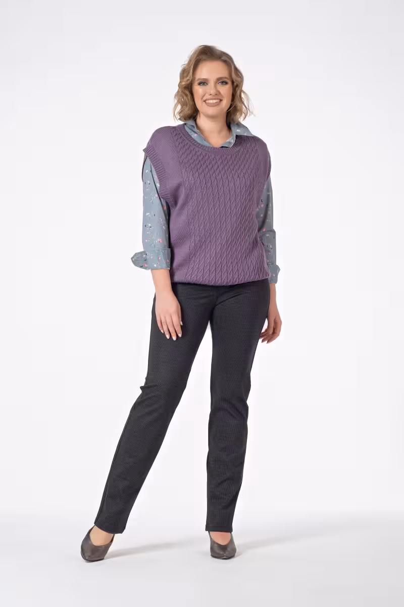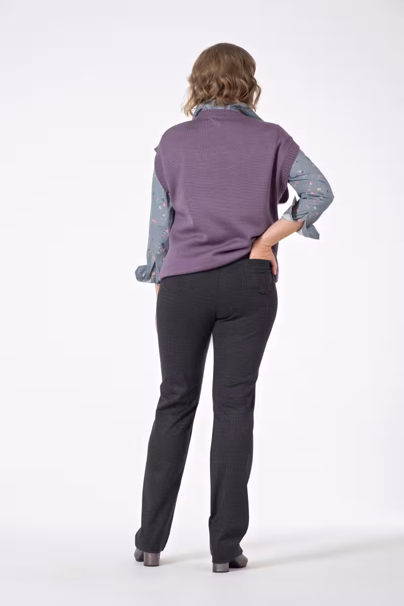 Прямой силуэт этих брюк создает лаконичную элегантность которая никогда не выходит из моды. Высокая посадка подчёркивает талию и визуально удлиняет ноги формируя красивые пропорции фигуры. Плотный трикотаж обеспечивает комфорт в течение всего дня не сковывая движений.Универсальность модели раскрывается в многообразии образов. В офисе эти брюки составят безупречную пару с блузкой и жакетом для делового образа. На деловой встрече они подчеркнут профессионализм и чувство стиля. Для прогулки достаточно дополнить их футболкой создав непринужденный casual-лук.Качественный трикотаж держит форму после стирки и не деформируется при носке. Прямые линии делают брюки идеальным выбором для путешествий – они не мнутся и всегда выглядят презентабельно. Высокая посадка позволяет легко заправлять топы и блузки создавая четкую линию талии. Эта модель станет надежной основой для создания стильных образов в любой ситуации.