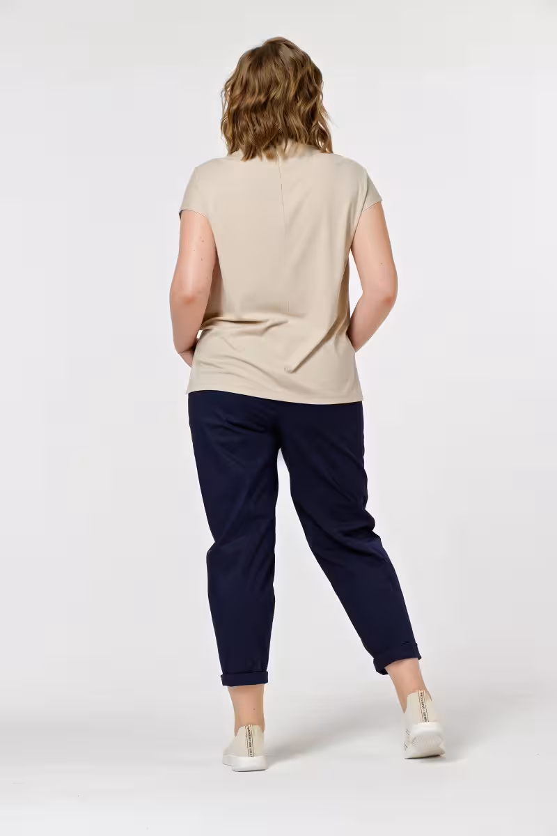 Свободные брюки-бананы дарят ощущение легкости и непринужденности в каждом движении. Силуэт создает расслабленный образ современной городской жительницы. Пояс на резинке обеспечивает комфорт с утра до вечера.