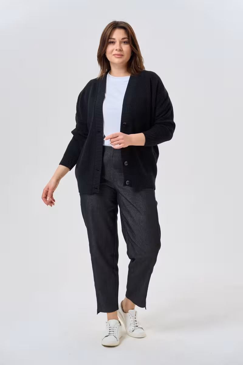 Стильные прямые брюки с декоративными лампасами станут основой для множества образов. Высокая посадка подчеркивает талию и визуально удлиняет ноги создавая безупречный силуэт. Широкий пояс на резинке обеспечивает комфорт в течение всего дня и свободу движений.Особая изюминка модели – лампасы которые внизу длиннее основного изделия что создает интересный динамичный эффект при ходьбе. Прямой силуэт универсален и подходит для разных типов фигуры. Декоративная вставка на спинке добавляет интересные детали в дизайн.Джинсовая ткань обеспечивает долговечность и практичность в носке. Эти брюки легко сочетаются с блузкой для делового образа или с футболкой для прогулок. Отсутствие застежки делает их максимально комфортными для повседневной носки.Подходят для офиса деловых встреч прогулок и путешествий. Контрастные лампасы добавляют спортивной нотки в классический прямой силуэт.