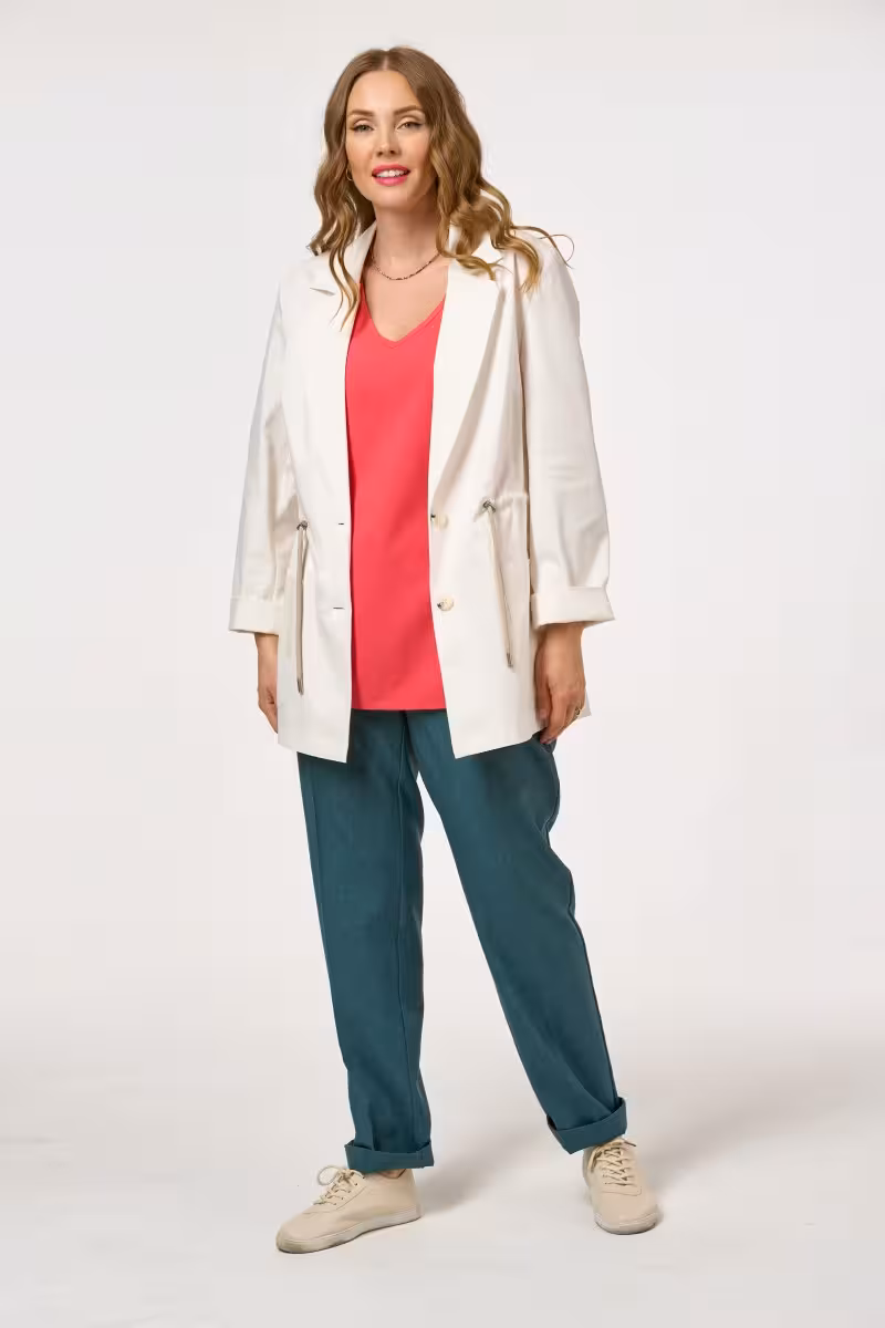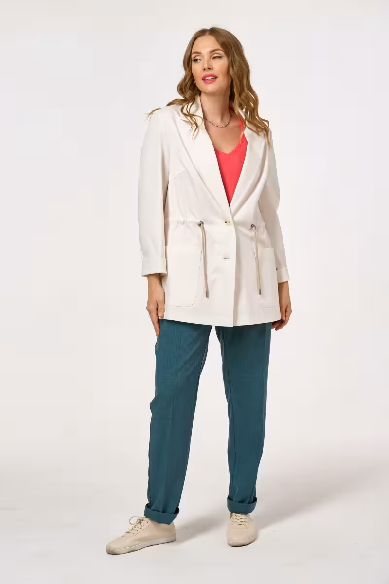Зауженные брюки создает безупречную линию от бедра к щиколотке визуально удлиняя ноги и подчеркивая женственность фигуры. Высокая посадка акцентирует талию формируя элегантный силуэт в духе современной классики. Заутюженные стрелки добавляют образу строгости и делового шика. Пояс сзади дополнен эластичной резинкой обеспечивая комфорт при движении и идеальную посадку по фигуре. Удобные наклонные карманы в боковых швах сочетают практичность с лаконичным дизайном. Застежка на молнии спереди завершает классический крой. Натуральный лен делает модель особенно актуальной в теплое время года. Брюки льняные это дышащая ткань создает ощущение прохлады и комфорта сохраняя элегантный внешний вид в течение дня. Универсальность модели позволяет создавать разнообразные образы. С блузкой и жакетом получается безупречный деловой лук для офиса и важных встреч. Сочетание с легкой футболкой или топом трансформирует брюки в стильный casual-вариант для прогулок или путешествий. Заутюженные стрелки добавляют даже повседневному образу нотку