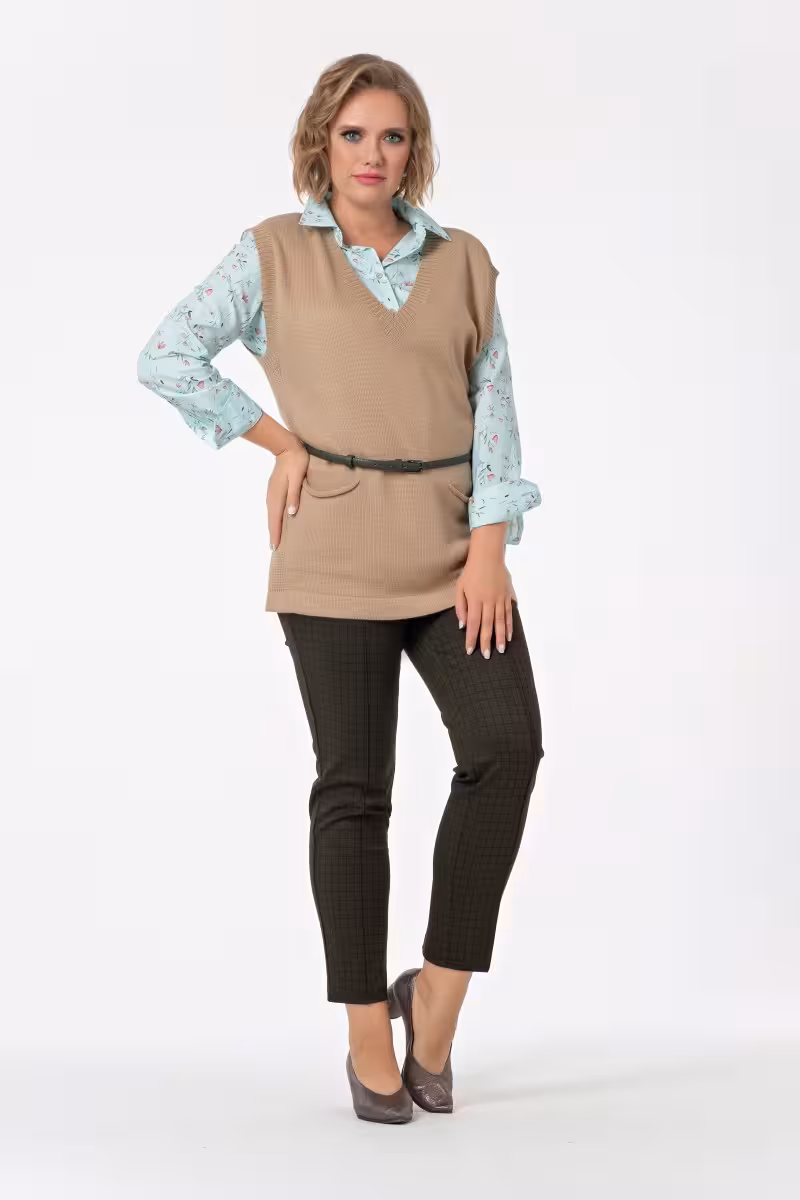 Эти прямые брюки станут основой делового гардероба для современной городской жительницы. Высокая посадка создает безупречный силуэт – подчёркивает талию и визуально удлиняет ноги что особенно важно для офисных образов. Четко выраженные стрелки на передней части добавляют элегантности и строгости делая брюки идеальным выбором для деловых встреч и презентаций.Особенность модели – пояс с вложенной резинкой который обеспечивает комфортное прилегание по линии талии без сдавливания. Это решение позволяет сохранять свободу движений в течение всего дня что особенно ценно в динамичном ритме городской жизни.Прямой силуэт универсален и подходит разным типам фигуры. Качественный состав ткани обеспечивает долговечность и сохранение формы после стирок. Застежка на молнию и две пуговицы гарантирует надежную посадку.Эти брюки легко сочетаются с блузками и жакетами для создания строгого офисного лука. Для менее формальных поводов их можно комбинировать с футболками или топами создавая стильные casual образы для про
