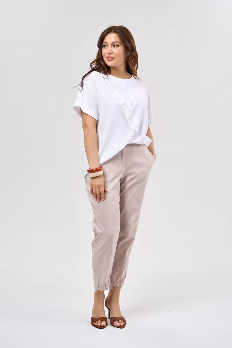 Зауженные брюки длиной до щиколотки станут основой для множества образов. Современный силуэт с плавным сужением к низу создает элегантную линию и визуально удлиняет ноги. Пояс на резинке дает свободу движений а дополнительная застежка на пуговицу обеспечивает надежную посадку.Средняя посадка комфортна для повседневной носки. Качественная ткань держит форму и не сковывает движения. Нейтральный бежевый оттенок легко сочетается с любыми цветами гардероба.Эти брюки одинаково уместны в офисе с блузкой и жакетом на прогулке с футболкой и кроссовками. Для вечернего выхода достаточно добавить изящный топ и туфли на каблуке. Удобная молния спереди делает модель практичной для ежедневной носки.Длина до щиколотки позволяет носить брюки с обувью на любой высоте каблука. Зауженный крой подходит для деловых встреч путешествий и неформальных мероприятий. Универсальная вещь для активной современной жизни.