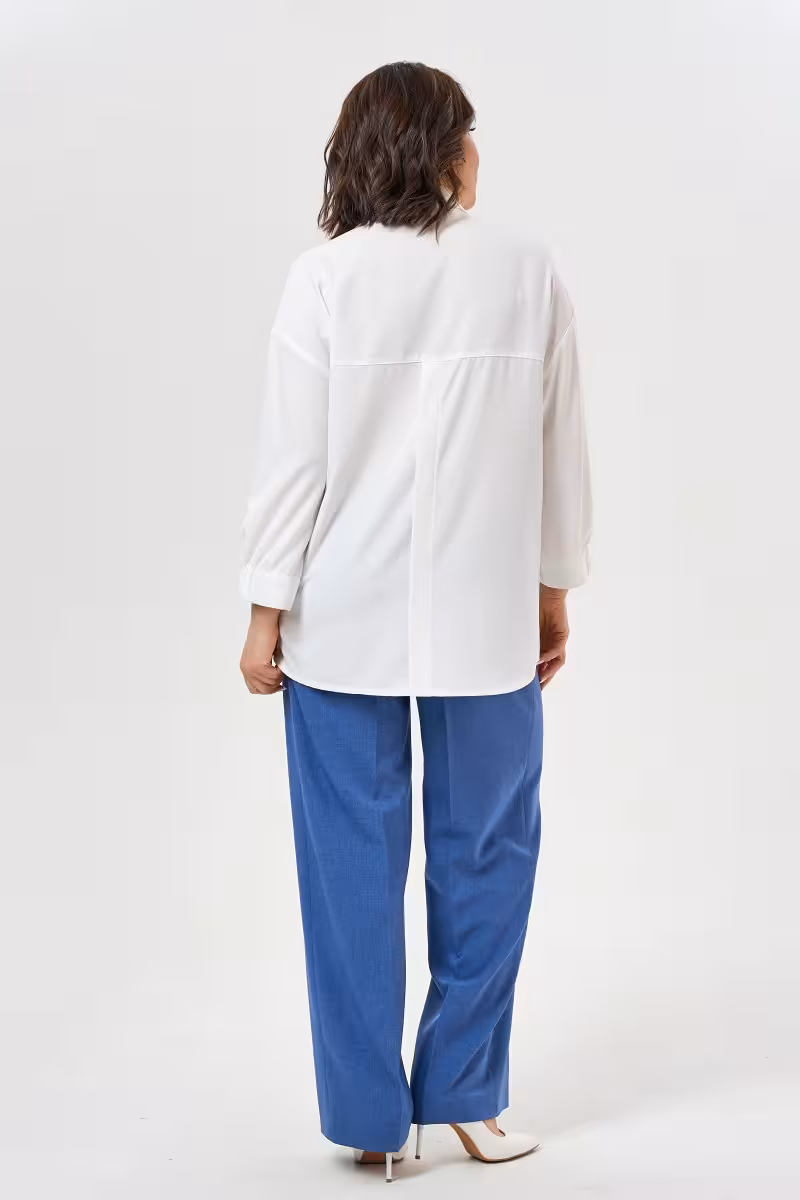 Прямые брюки классической посадки воплощают философию современной элегантности без компромиссов. Силуэт прямой трубы создает безупречную линию от бедра до щиколотки визуально удлиняя ноги и придавая фигуре стройность. Продуманная конструкция пояса сочетает строгость классики с практичным комфортом – эластичная вставка сзади позволяет забыть о скованности движений во время долгого рабочего дня. Застежка на молнию спереди и две пуговицы обеспечивают надежную посадку а широкие петли для ремня открывают простор для стилистических экспериментов.Боковые карманы решают вопрос практичности не нарушая чистоту линий. Качественная ткань держит форму и не мнется что делает эти брюки незаменимыми в путешествиях и насыщенных буднях.Модель идеально вписывается в деловой дресс-код в паре с блузкой и жакетом превращается в casual-образ с футболкой или свитером. Для вечернего выхода достаточно добавить изящный топ и аксессуары. Универсальность этих брюк позволяет создавать образы для офиса деловых встреч прогулок