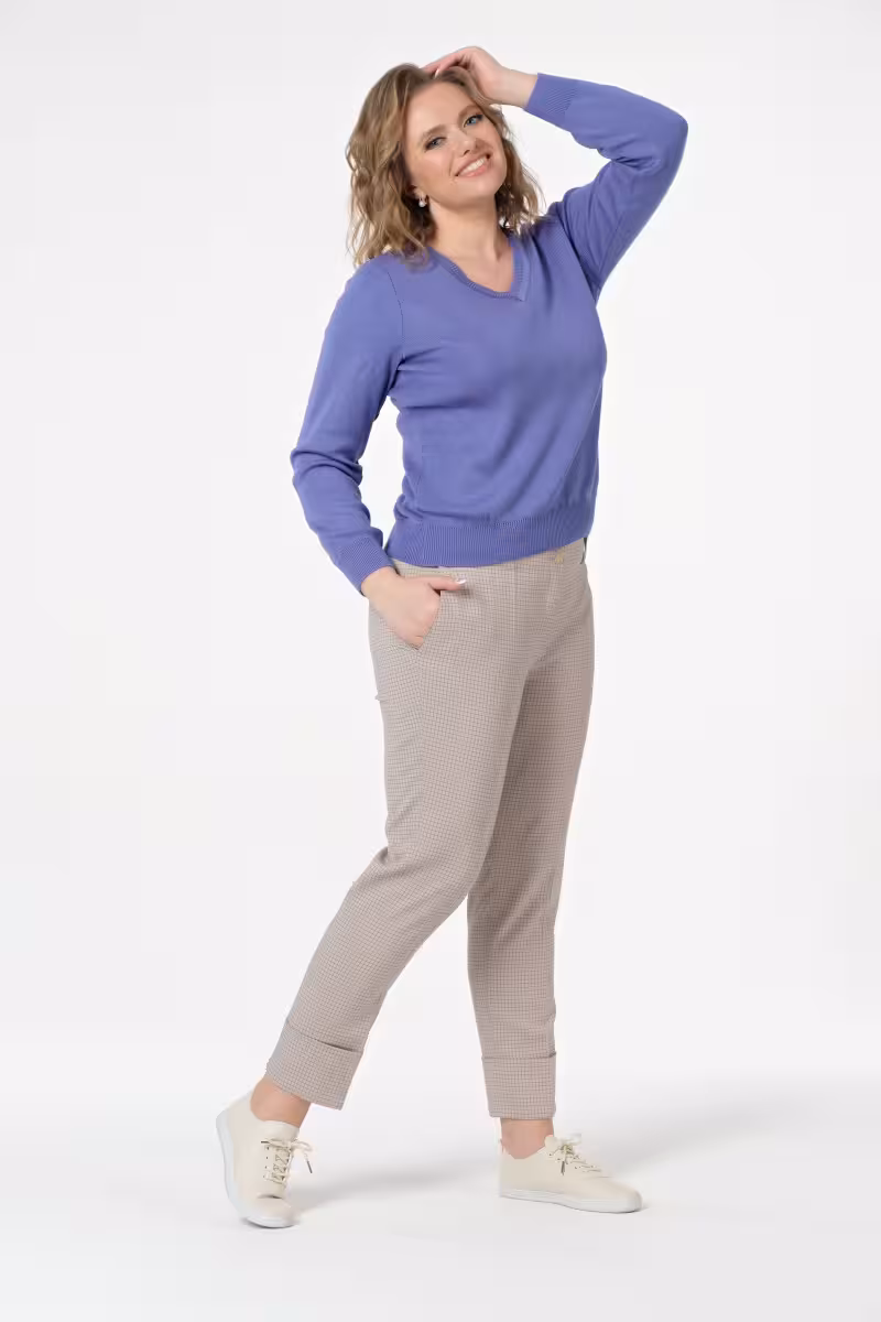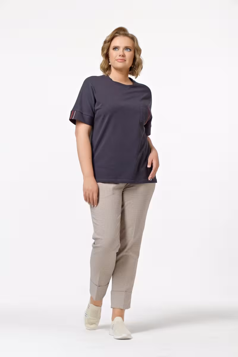 Эти зауженные брюки со стрелками станут основой для множества образов. Четкие стрелки визуально удлиняют ноги и добавляют элегантности а зауженный силуэт подчеркивает женственность фигуы. Широкие отвороты – современный акцент который делает модель особенно актуальной.Удобная застежка на молнию с двумя пуговицами надежно фиксирует посадку не создавая дискомфорта при движении. Боковые карманы расположены в боковых швах – практичное решение для повседневной носки.Качественная ткань держит форму в течение всего дня и не мнется. Средняя посадка обеспечивает комфорт и универсальность – такие брюки легко сочетать с различными топами.Для делового образа дополните брюки блузкой и жакетом. В паре с футболкой получится стильный casual-лук для прогулок. С элегантным топом создадите образ для вечернего выхода или деловой встречи.Универсальная модель подходит для офиса важных встреч путешествий и вечерних мероприятий. Классический крой и современные детали делают эти брюки must-have любого гардероба.