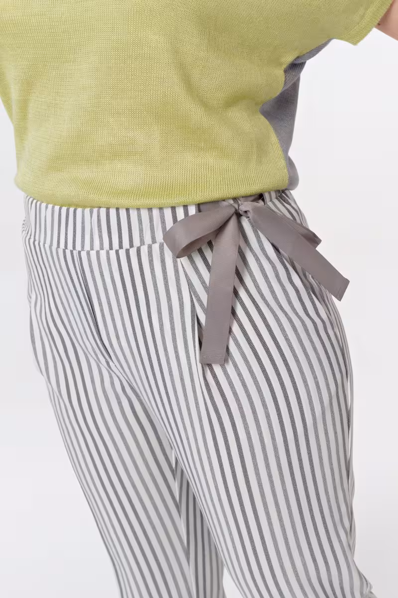 Свобода движений встречается с продуманным дизайном в этих укороченных брюках. Мягкий пояс на резинке с декоративной лентой сбоку добавляет женственности casual-образу.