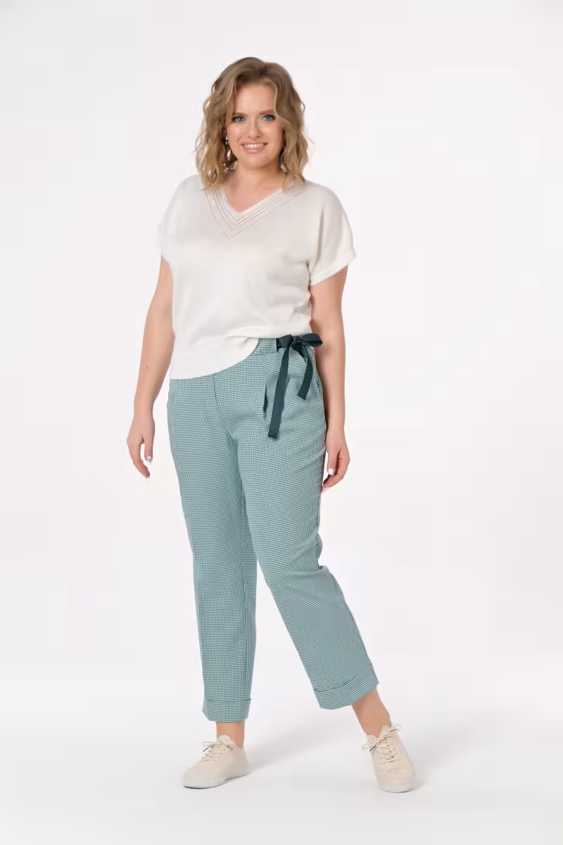 Эти брюки созданы для тех кто ценит комфорт без компромиссов в стиле. Свободный силуэт не сковывает движения а пояс на мягкой резинке обеспечивает идеальную посадку в течение всего дня. Декоративная лента-завязка сбоку добавляет изящный акцент и позволяет регулировать силуэт по настроению.Слегка укороченная длина визуально удлиняет ноги и прекрасно сочетается с любой обувью – от кроссовок до изящных лодочек. Практичные боковые карманы делают эти брюки незаменимыми для повседневной носки. Аккуратно обработанный низ с подворотом завершает продуманный дизайн.Универсальность этой модели позволяет создавать образы для разных случаев жизни. С хлопковой футболкой получается идеальный casual-лук для прогулок и встреч с друзьями. Дополните образ блузкой из натурального шелка – и готов элегантный наряд для деловой встречи. Качественная ткань с добавлением эластана обеспечивает долговечность и комфортную носку.