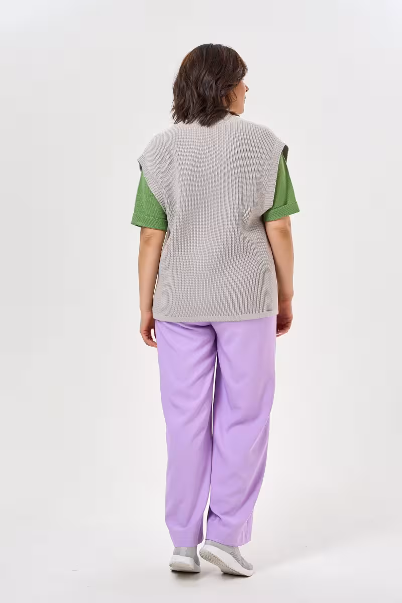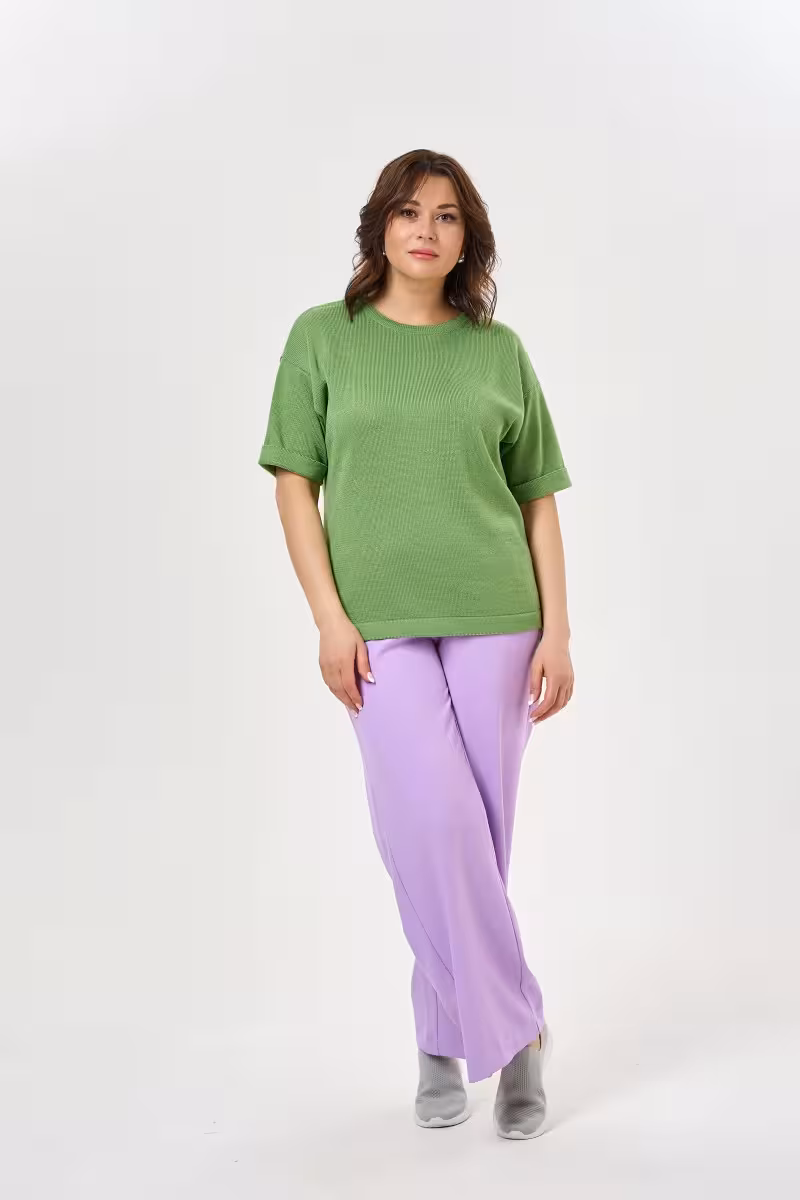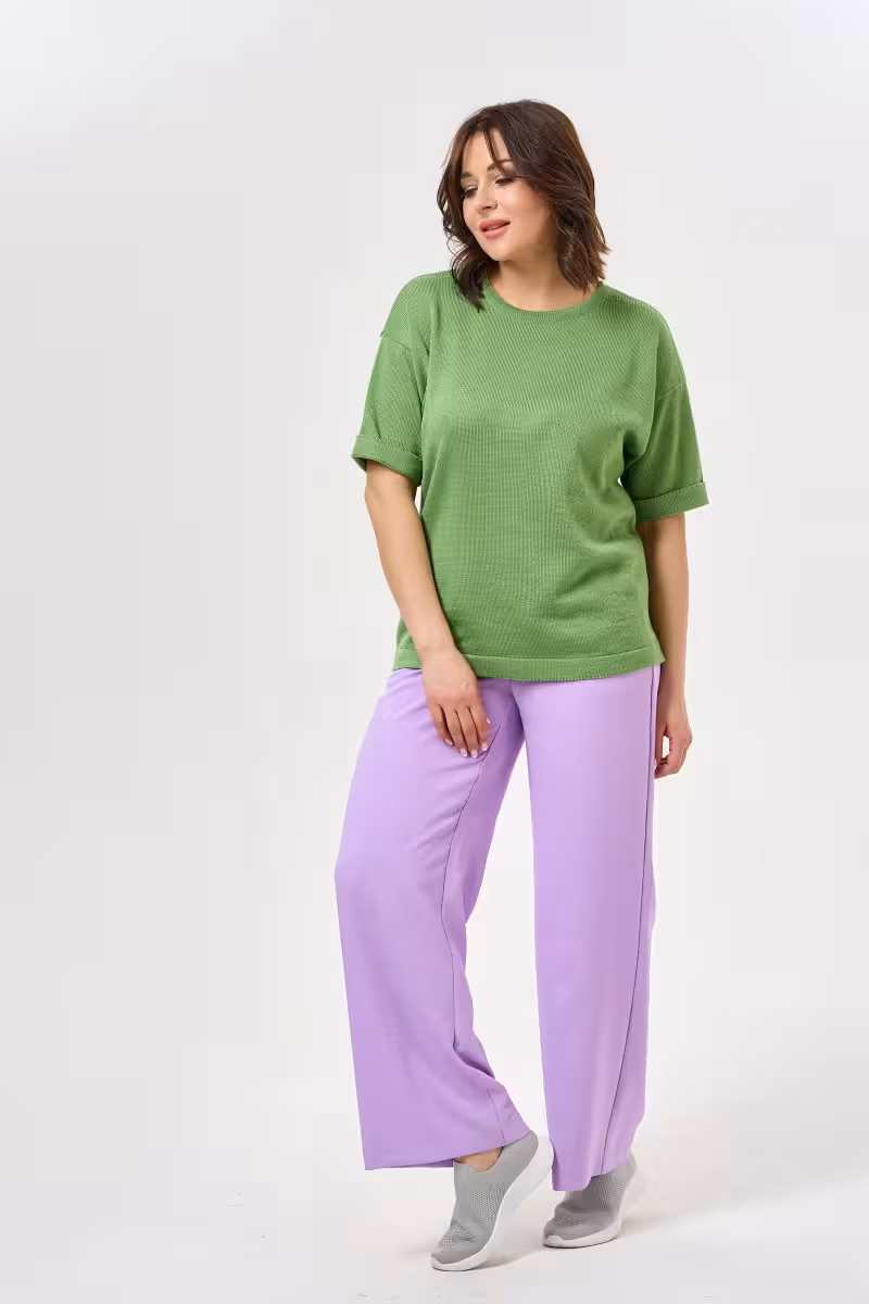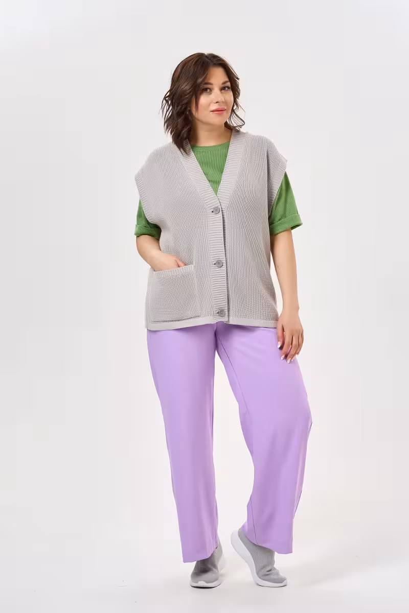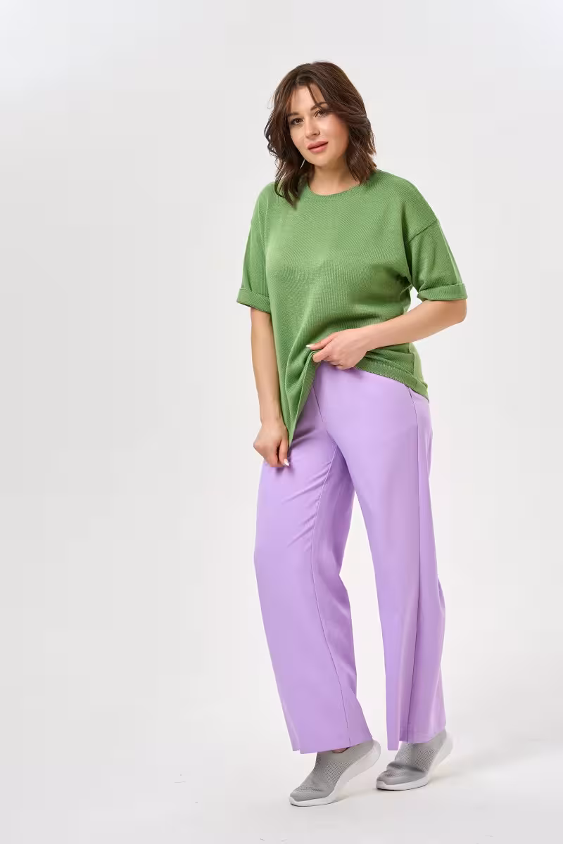 Широкие брюки прямого силуэта станут основой для создания расслабленных и стильных образов. Средняя посадка обеспечивает комфортную носку и подходит большинству типов фигуры. Прямой крой от бедра до низа создает элегантный силуэт без лишнего объема.Пояс на резинке гарантирует свободу движений и удобство в течение всего дня. Практичные карманы в боковых швах добавляют функциональности не нарушая общую гармонию линий. Благодаря качественной ткани брюки держат форму и приятны к телу.Эта модель идеально вписывается в casual-гардероб. С футболкой или топом получается непринужденный образ для прогулок и встреч с друзьями. В сочетании с блузкой брюки подойдут для рабочих будней в свободном дресс-коде. Для путешествий такая модель незаменима благодаря комфорту и универсальности.Широкие брюки позволяют экспериментировать с пропорциями и создавать современные образы в духе актуальных трендов. Размерная линейка включает размеры от 46 до 60.