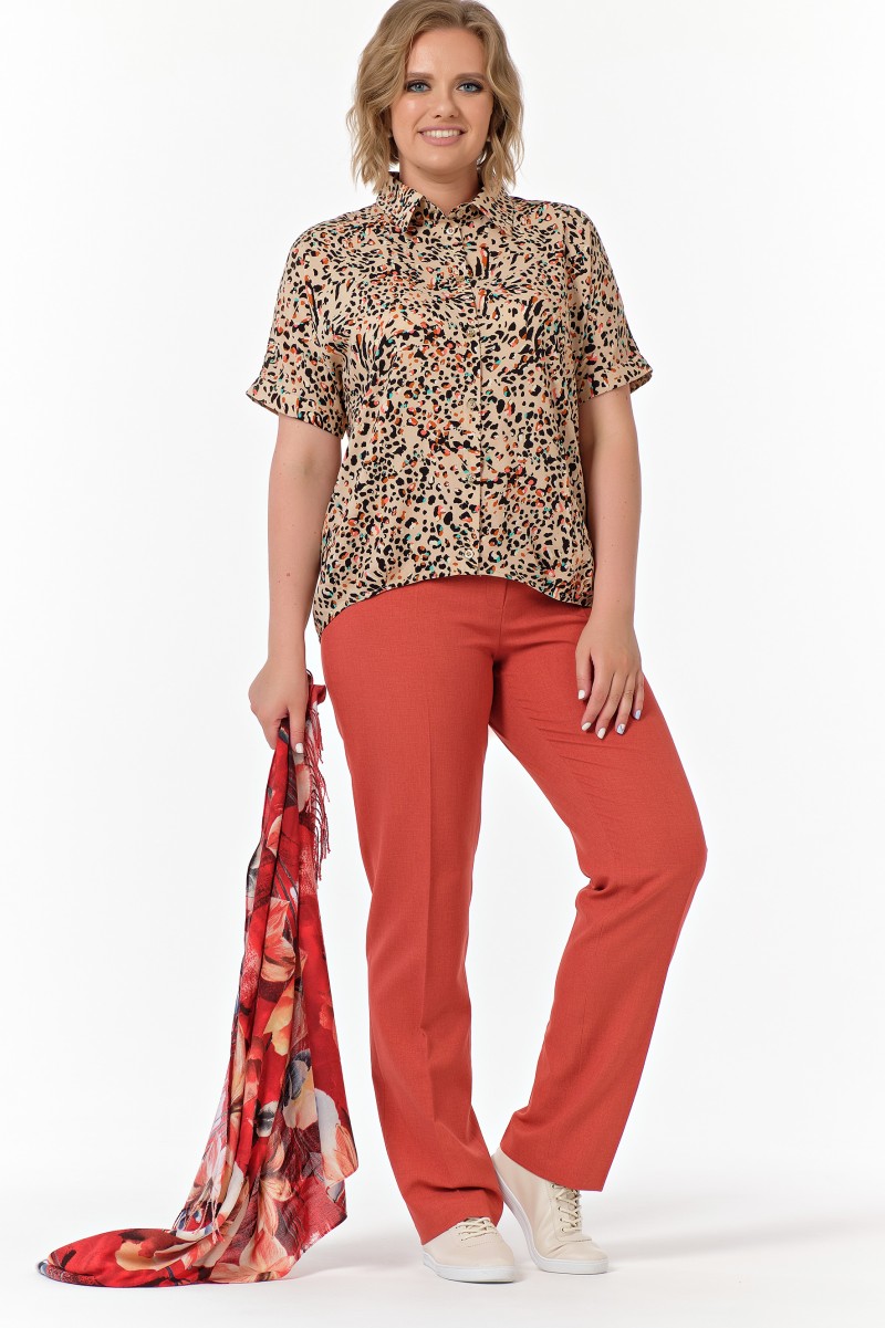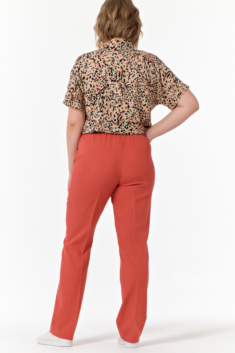 Брюки классические со «стрелками». Высокая комфортная посадка. В подгибку верхнего края вставлена эластичная тесьма (резина). На переде имитация застежки и декоративная пуговица на поясе.