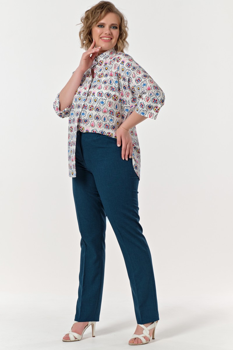 Брюки классические со «стрелками». Высокая комфортная посадка. В подгибку верхнего края вставлена эластичная тесьма (резина). На переде имитация застежки и декоративная пуговица на поясе.