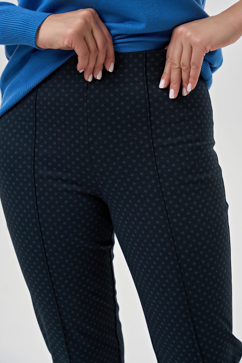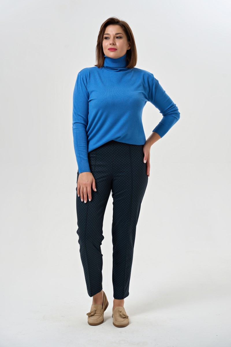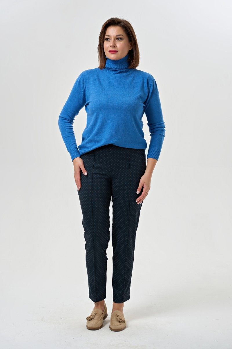 трикотажное полотно шайбаБрюки прямые без застежки с высокой комфортной посадкой. Верх брюк вкруговую обработан широкой резиной.На переде брюк заутюжены и настрочены на 02 см “”стрелки””.