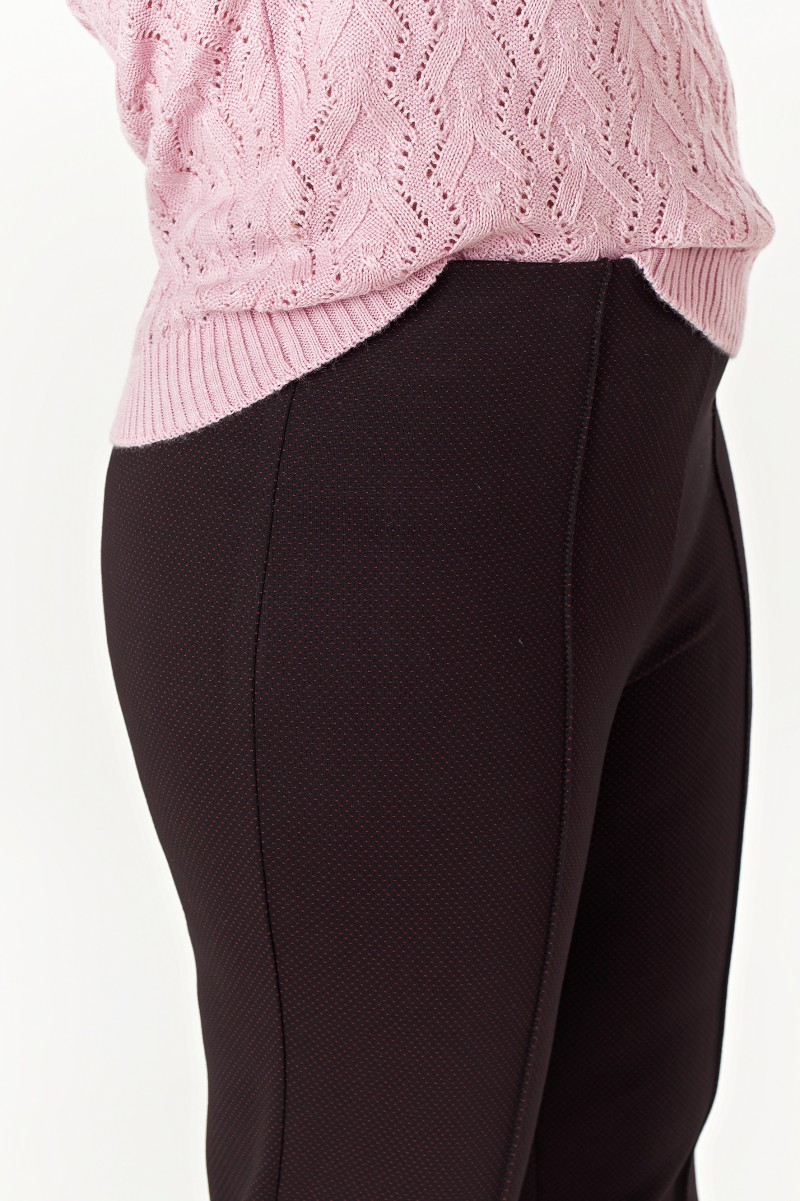 Брюки прямые без застежки с высокой комфортной посадкой. Верх брюк вкруговую обработан широкой резиной. На переде брюк «стрелки» настроченые по сгибу на 02 см