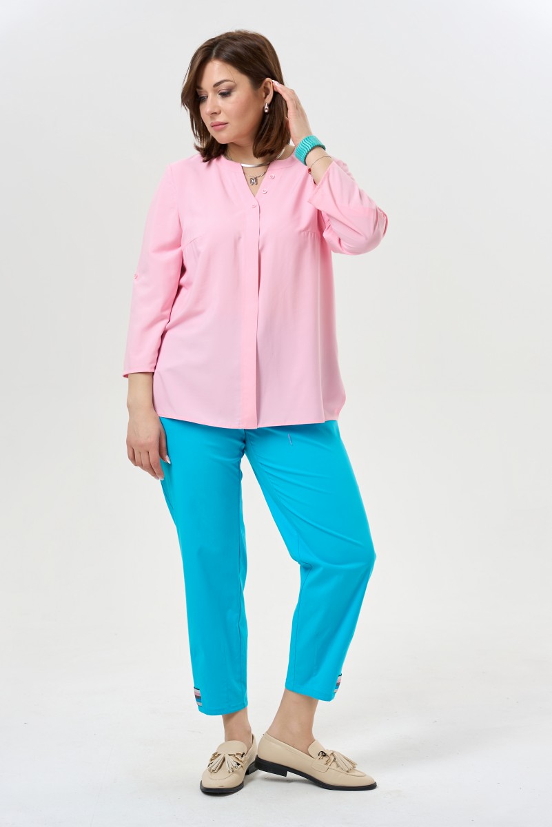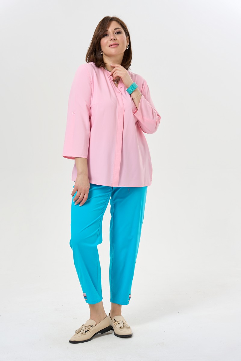Брюки женские силуэт “”Марковка”” длиной до щиколотки. Пояс прямой притачной сверху частично настрочена декоративная резинка. По переду наклонный карман в боковом шве. По низу брюк вытачки по две на передней и задней половинке брюк. Между вытачками по боковому шву настрочена декоративная резинка.