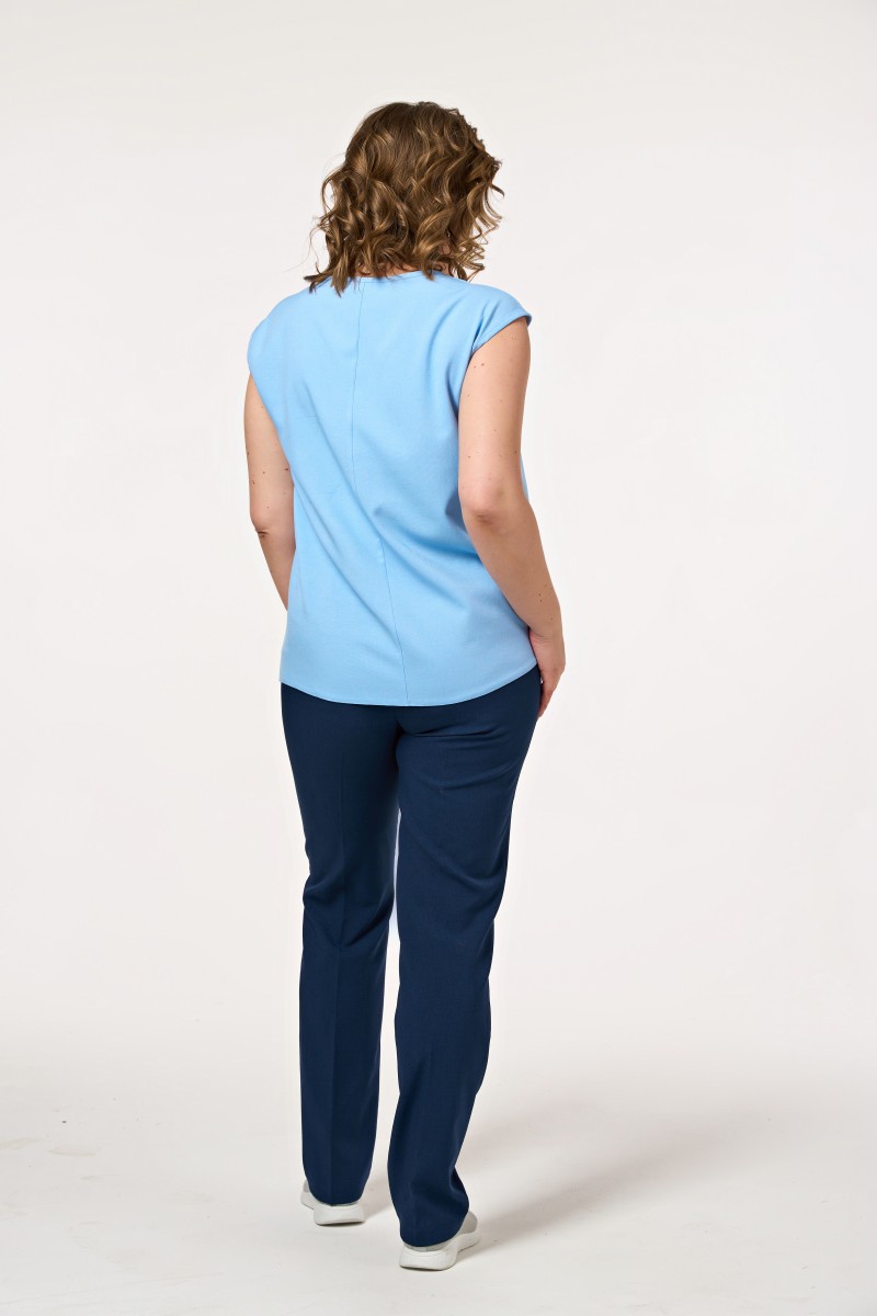 Классические брюки со стрелками на высокой комфортной посадке. Пояс на круговой резинке добавляет удобства в больших размерах. Имитация застежки замка-молнии сохраняет натуральный вид изделия.