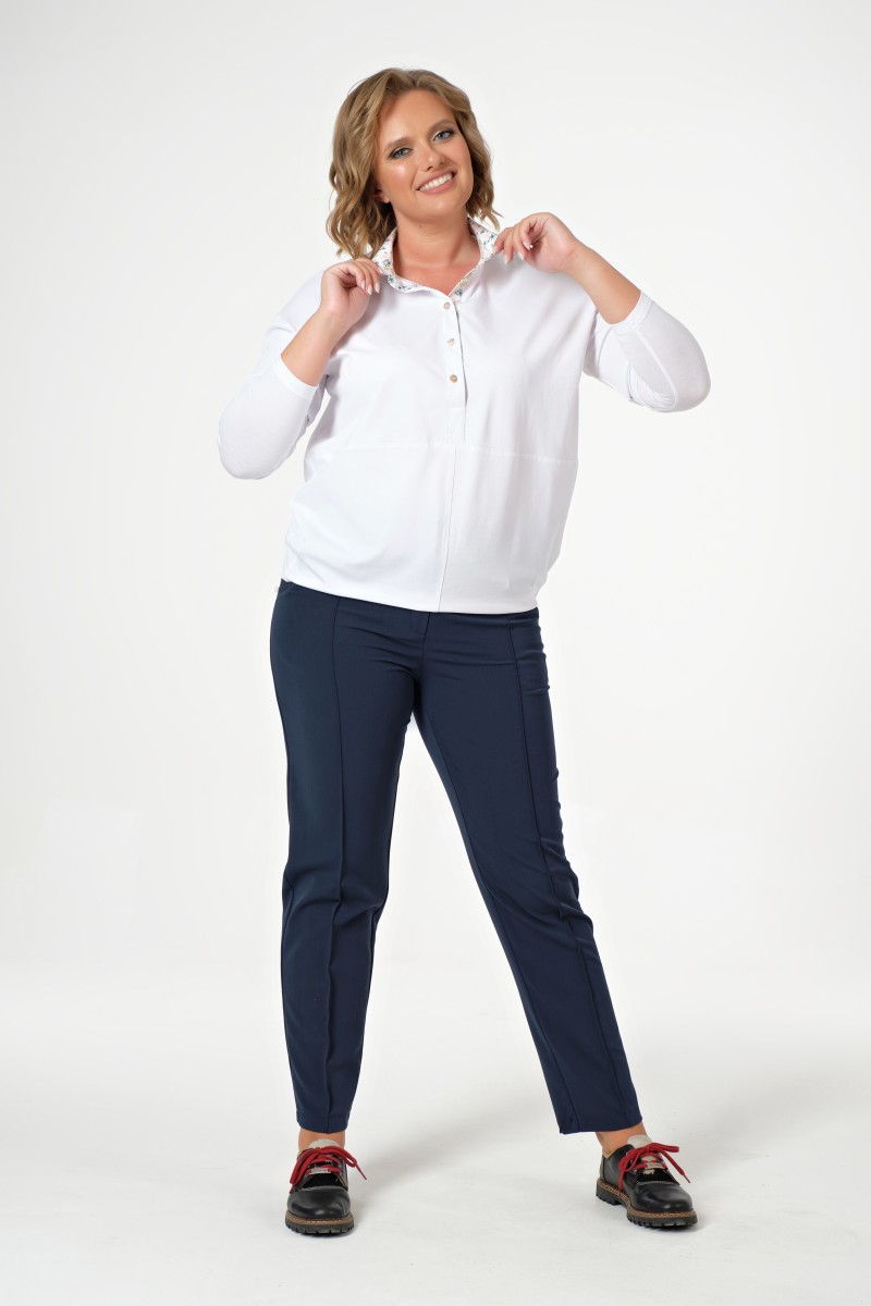 Укороченные брюки с функциональными карманами. Брюки слегка зауженные к низу с настроченными по сгибу на 02 см “”стрелками””. Застежка центральная на «замок-молнию» и 2 пуговицы.