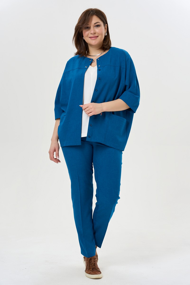 Брюки женские зауженые к низу на притачном поясе. Пояс по спинке на резинке. По переду наклонные карманы в боковых швах. Застежка на молнии по переду и спинке заутюженные стрелки.