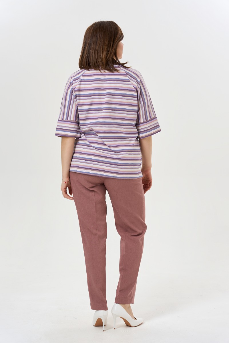 Брюки женские зауженые к низу на притачном поясе. Пояс по спинке на резинке. По переду наклонные карманы в боковых швах. Застежка на молнии по переду и спинке заутюженные стрелки.