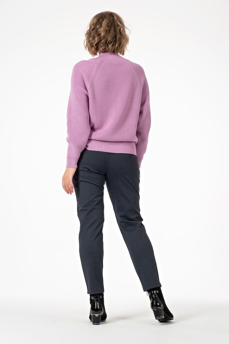 Брюки со средней посадкой укороченные и зауженные к низу с лампасами из отделочного материала и притачным поясм на переде и спинке.