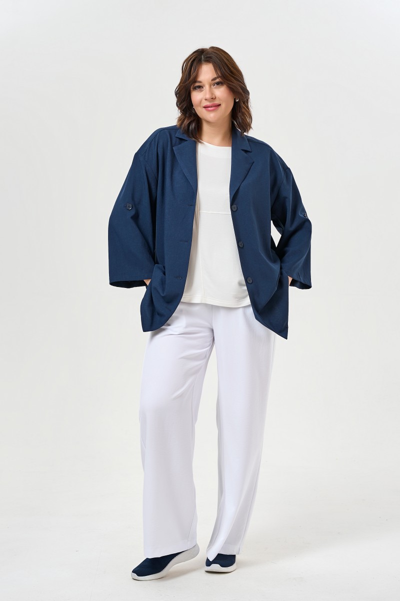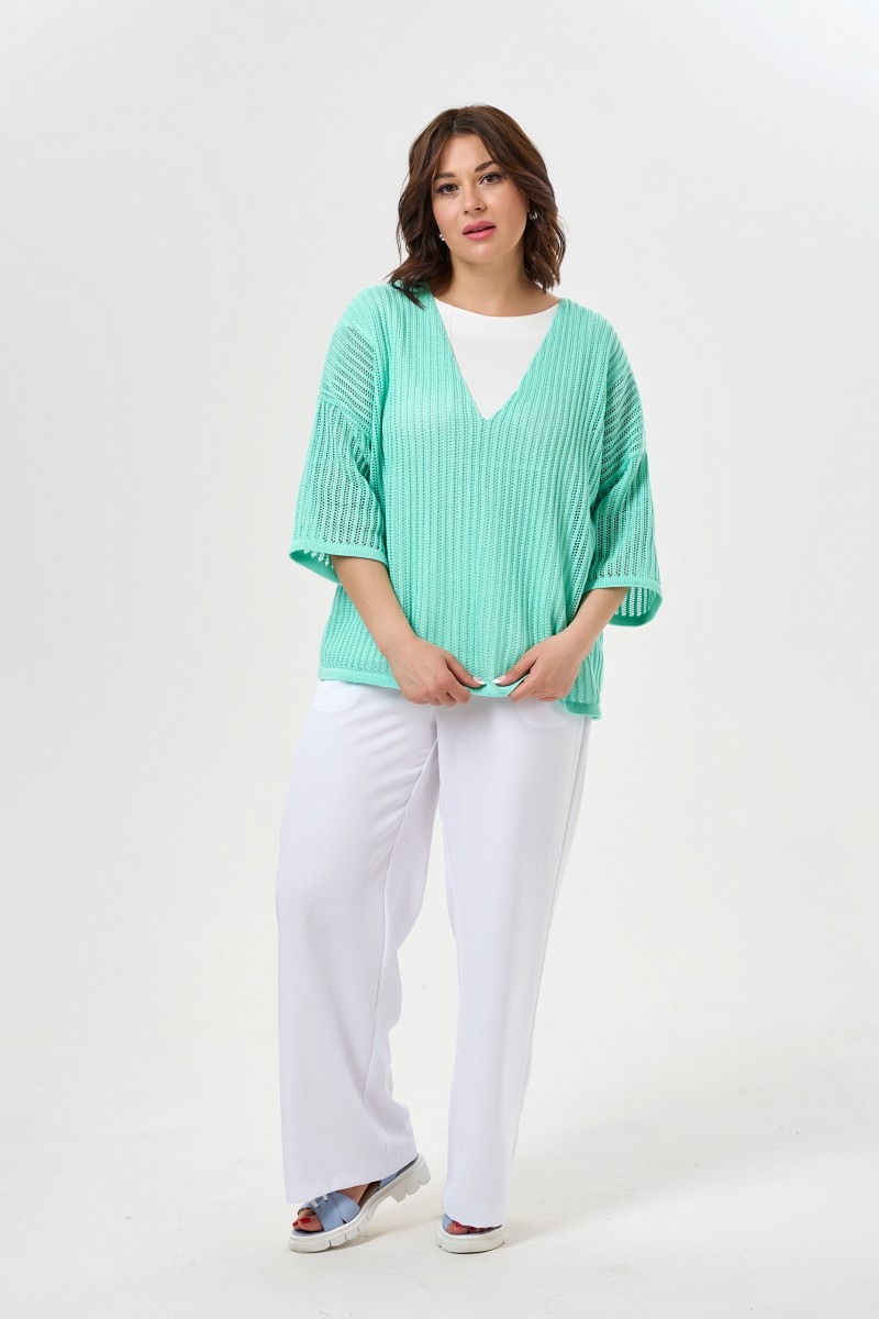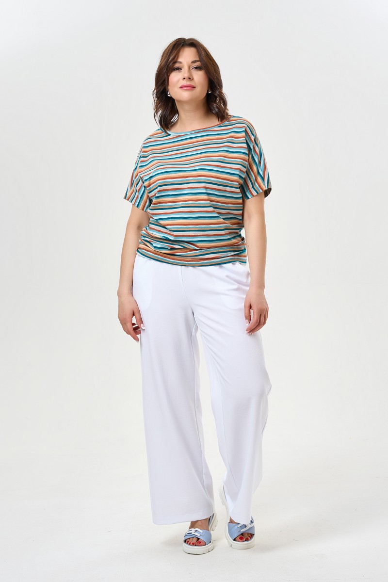 Брюки женские со средней посадкой прямые по всей длине на притачном поясе с резиной. Передние половины брюк с карманами в отрезных бочках с прямым оформлением входа в карман. Задние половины брюк – без особенностей.