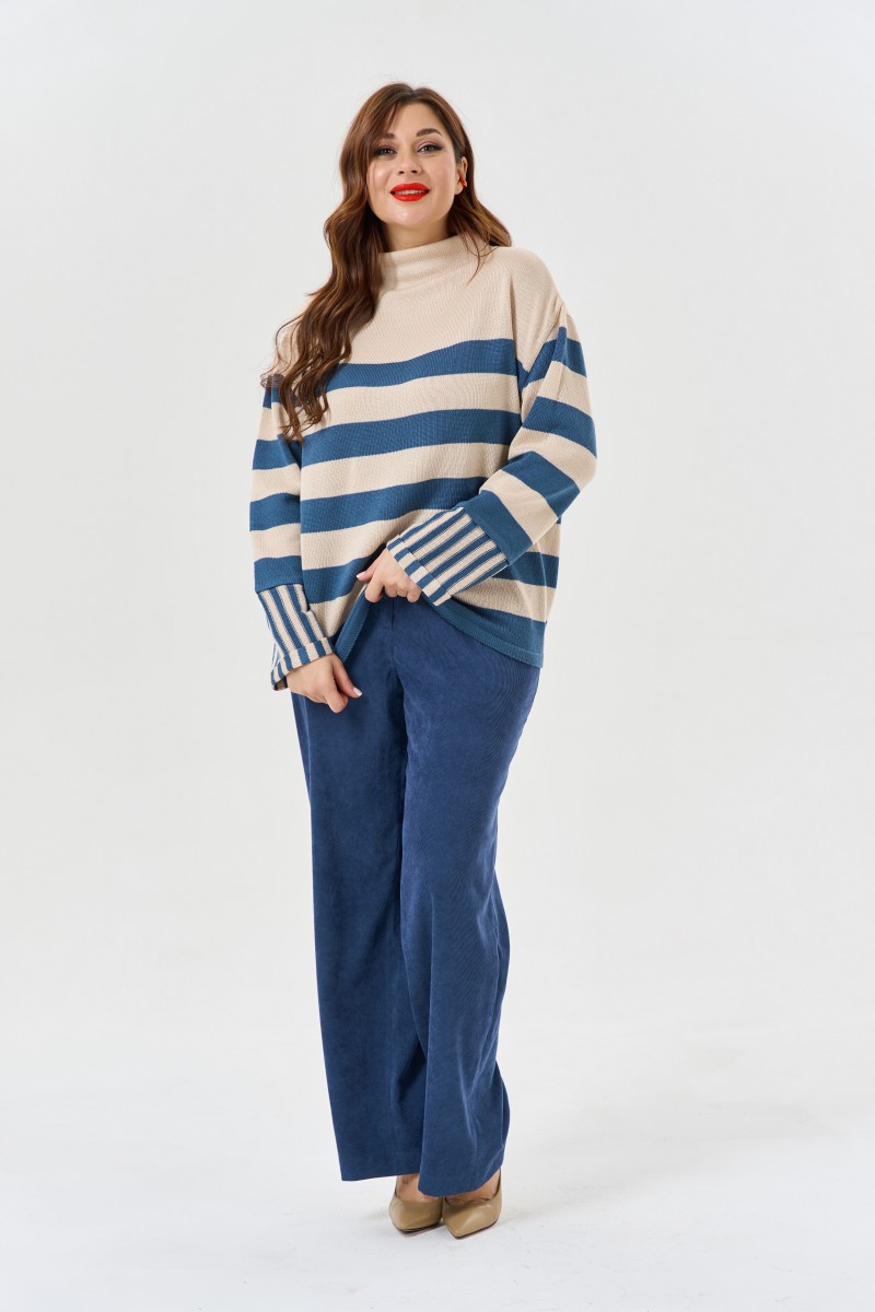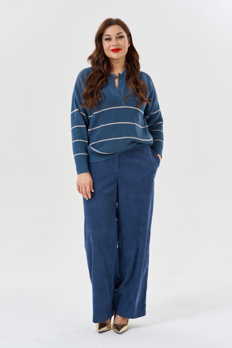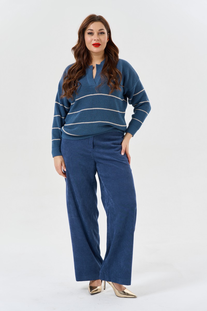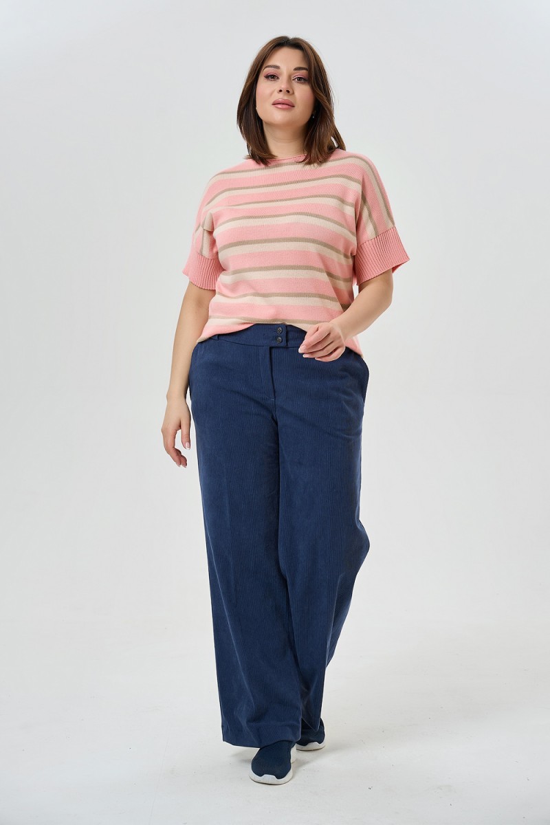 Брюки женские прямого силуэта форма “”Трубы””.Тип посадки классический застежка по центру на тесьму – молния с гульфиком. По переду боковые карманы. Пояс притачной подкрайной по спинке с резиновой тесьмой застегивается на 2 пробивных петли и 2 пуговицы. По поясу 3 широкие шлевки. По передним и задним половинкам брюк заутюженные стрелки.