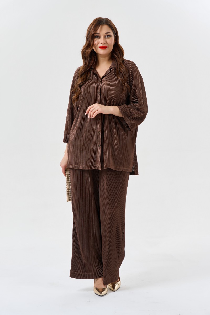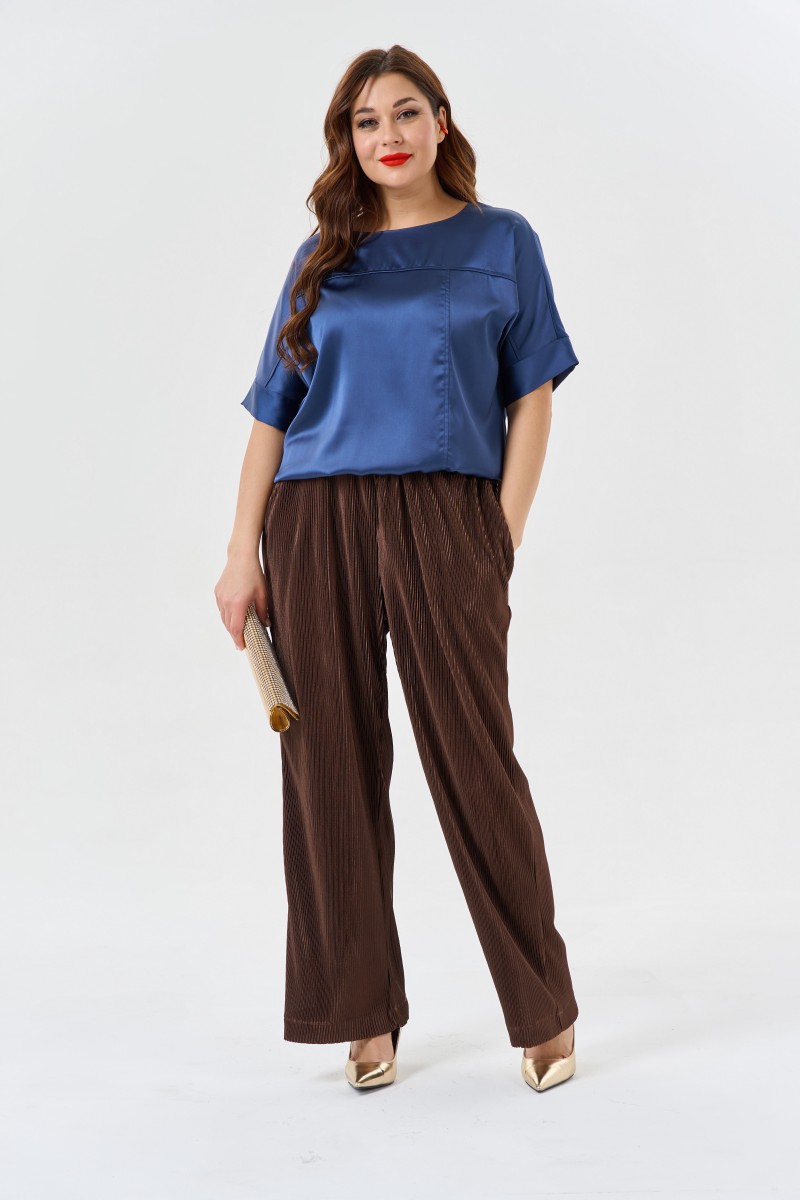 Брюки женские свободного прямого силуэта.Брюки на резинке с боковыми карманами. Данная модель идет в двух размерах 46-50 и 52-56.К брюкам есть блузка-рубашка модель 0855-823 также в двух размерах 46-50 и 52-56