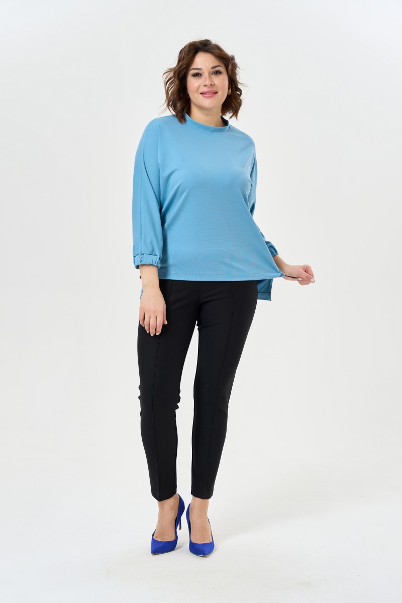 Брюки прямые без застежки с высокой комфортной посадкой. Верх брюк вкруговую обработан широкой резиной. На переде брюк «стрелки» настроченые по сгибу на 02 см
