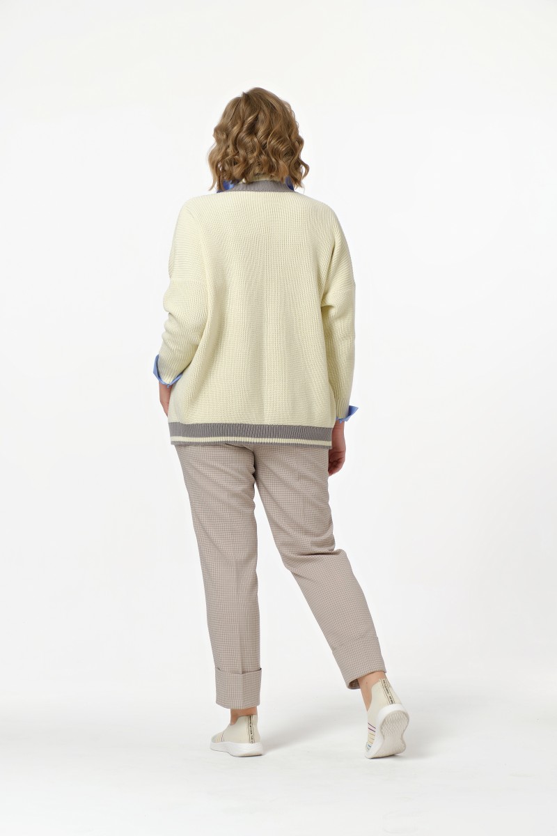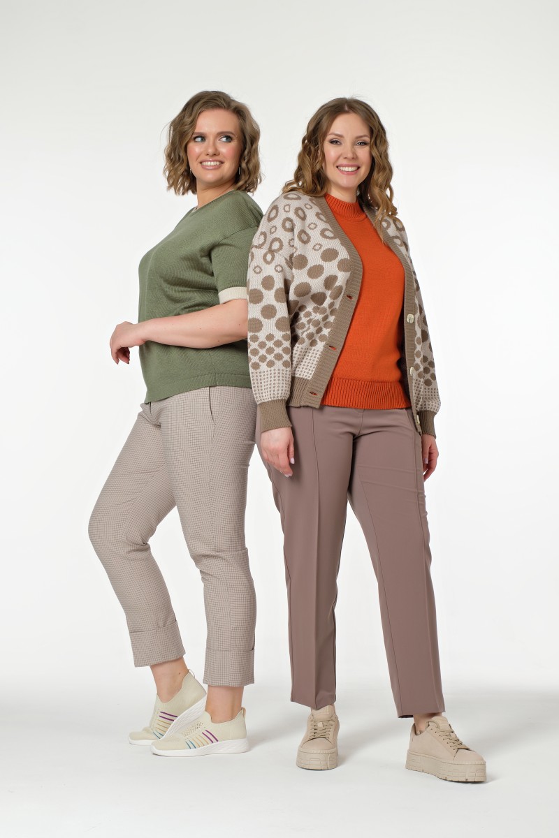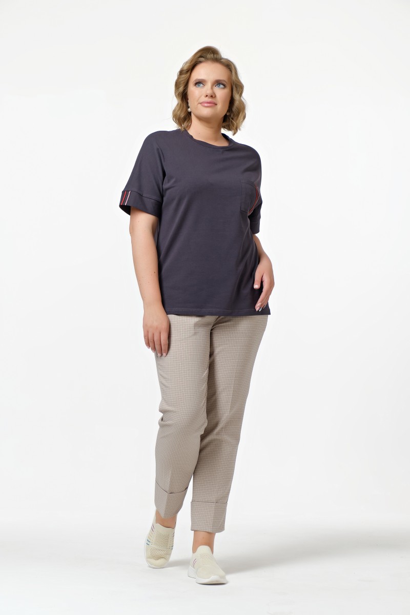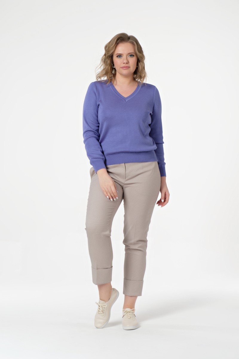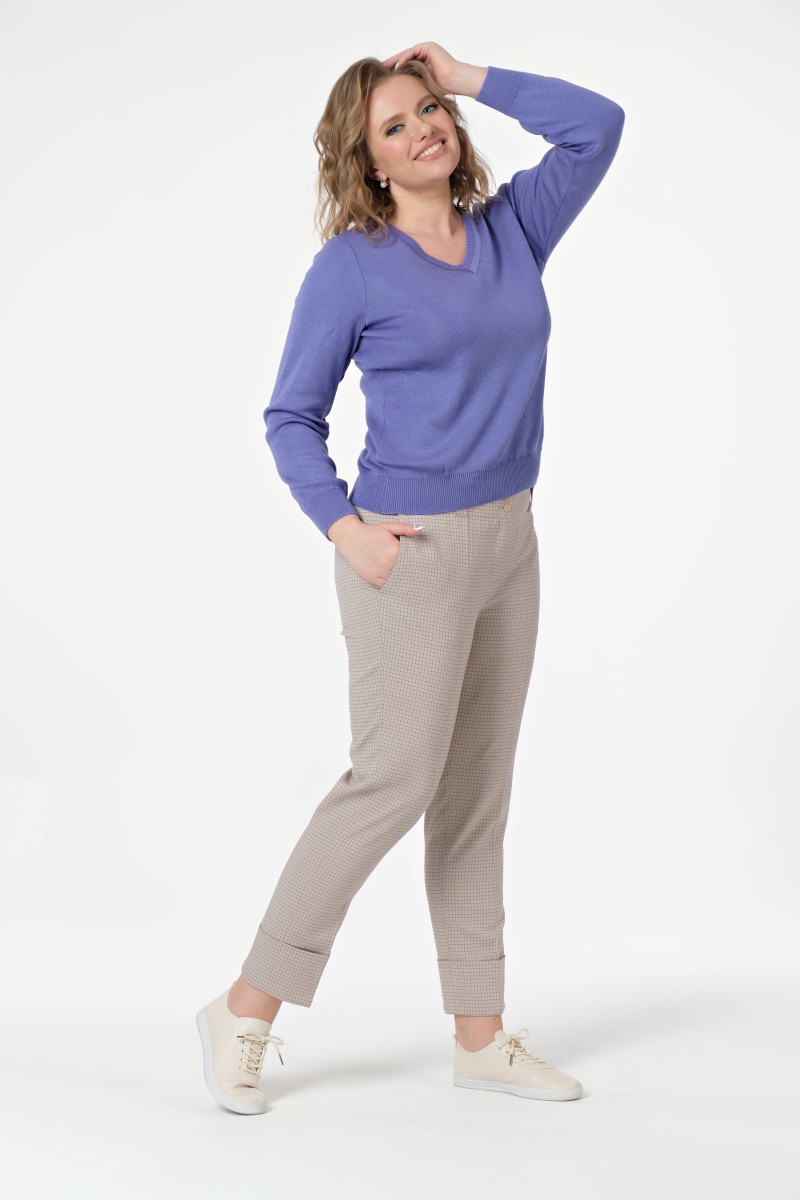 Брюки женские со стрелками и притачными широкими манжетами с застежкой замок-молния и две пуговицы. Карманы боковые в отрезных бочках.