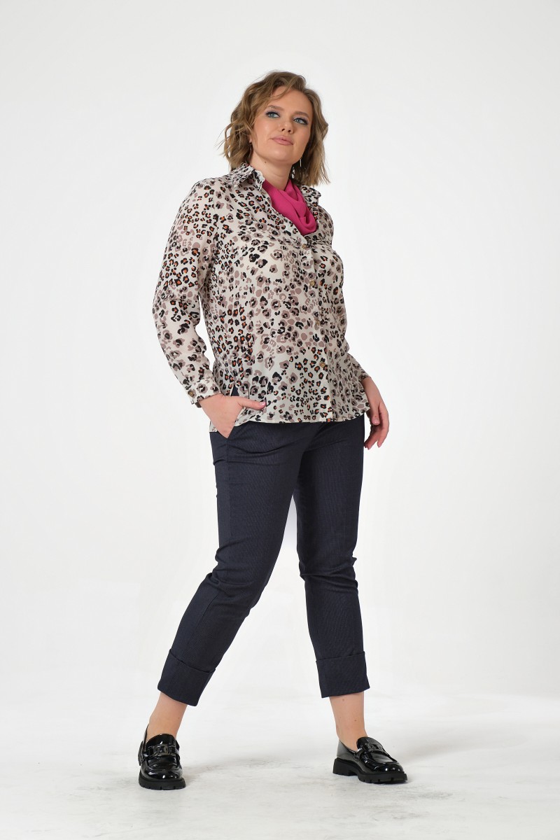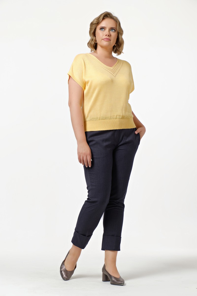 Брюки женские со стрелками и притачными широкими манжетами с застежкой замок-молния и две пуговицы. Карманы боковые в отрезных бочках.