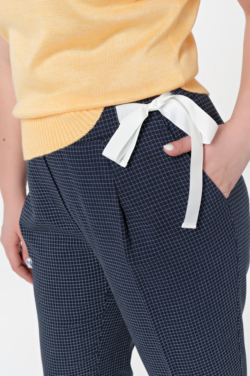 Укороченные брюки с высокой посадкой темно синего цвета в мелкую клеточку