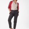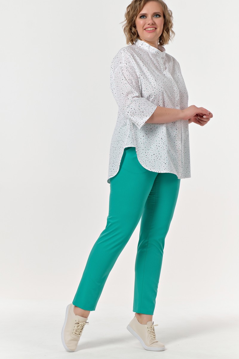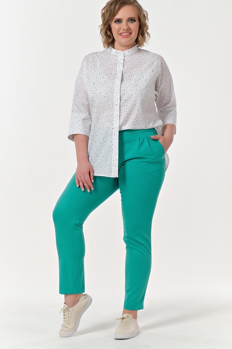 Брюки классические зауженные к низу с высокой посадкой на притачном поясе средней ширины. В заднюю часть пояса вставлена эластичная резина обеспечивающая комфортное прилегание по талии. Центральная застежка на «молнию» и 2 пуговицы и петли на поясе