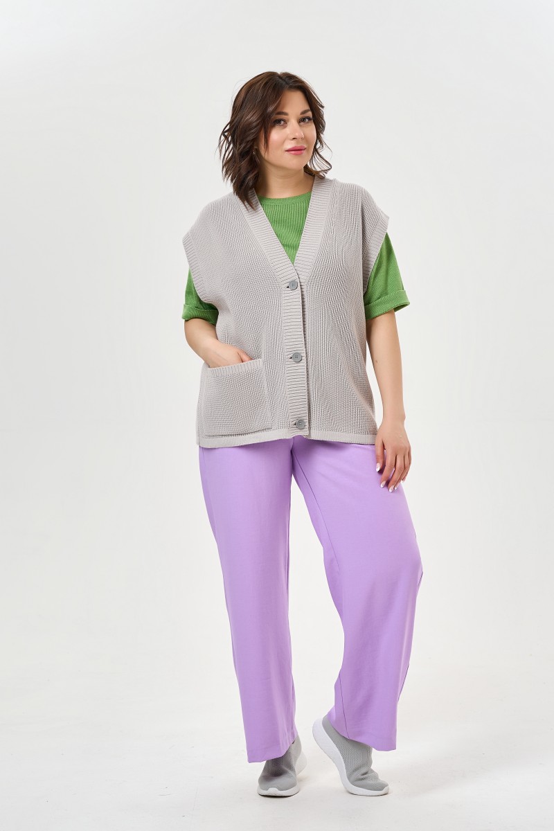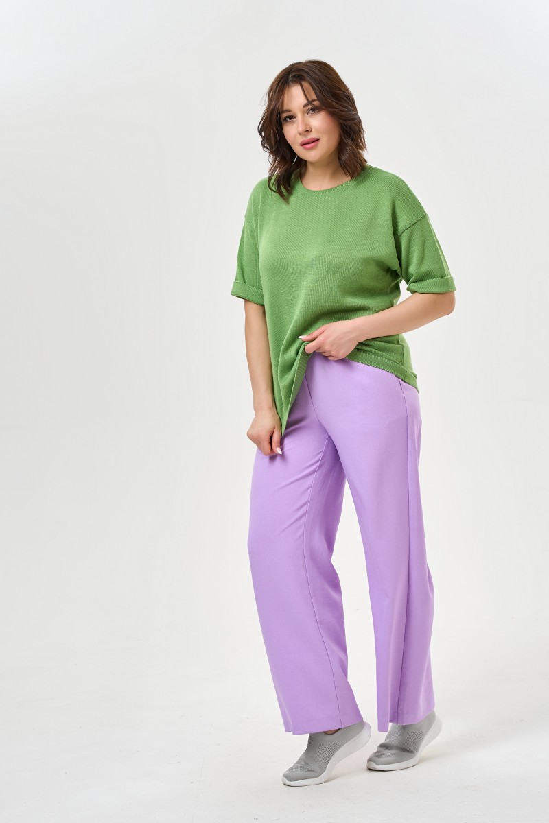 Брюки женские со средней посадкой прямые по всей длине на притачном поясе с резиной.Передние половины брюк с карманами в отрезных бочках с прямым оформлением входа в карман.Задние половины брюк – без особенностей.Размеры задвоены: 46-48; 50-52; 54-56; 58-60.